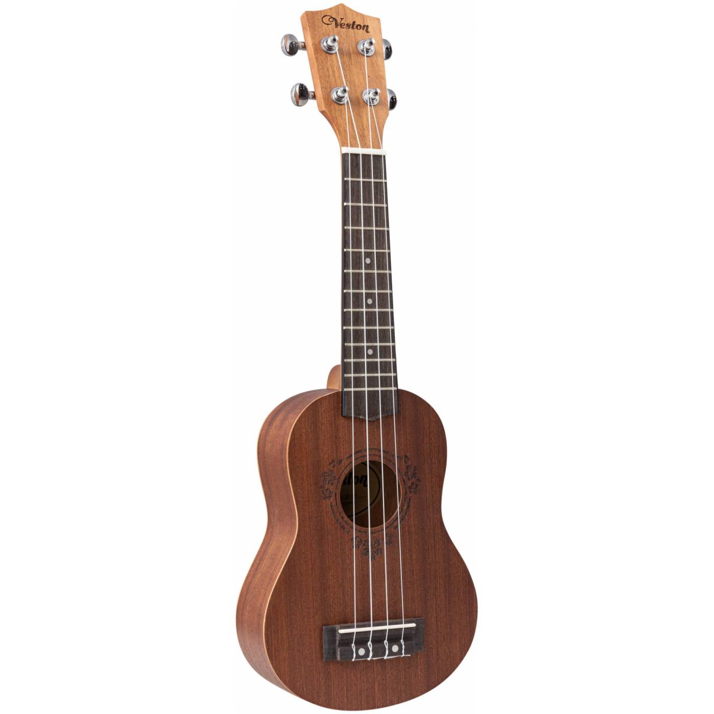 VESTON KUS 20NT имеет стандартный размер, который принято называть «сопрано». Он традиционно считается максимально удобным именно для начинающих музыкантов. Корпус укулеле сделан из разновидности красного дерева - сапеле. Модель представлена в натуральном цвете с матовой отделкой корпуса и грифа. Звучание инструмента приятное и сбалансированное.