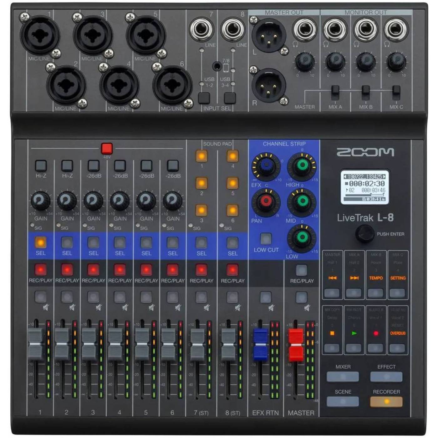 Zoom L-8 LIVETRAK — многофункциональная цифровая консоль для микширования, звукозаписи, мониторинга