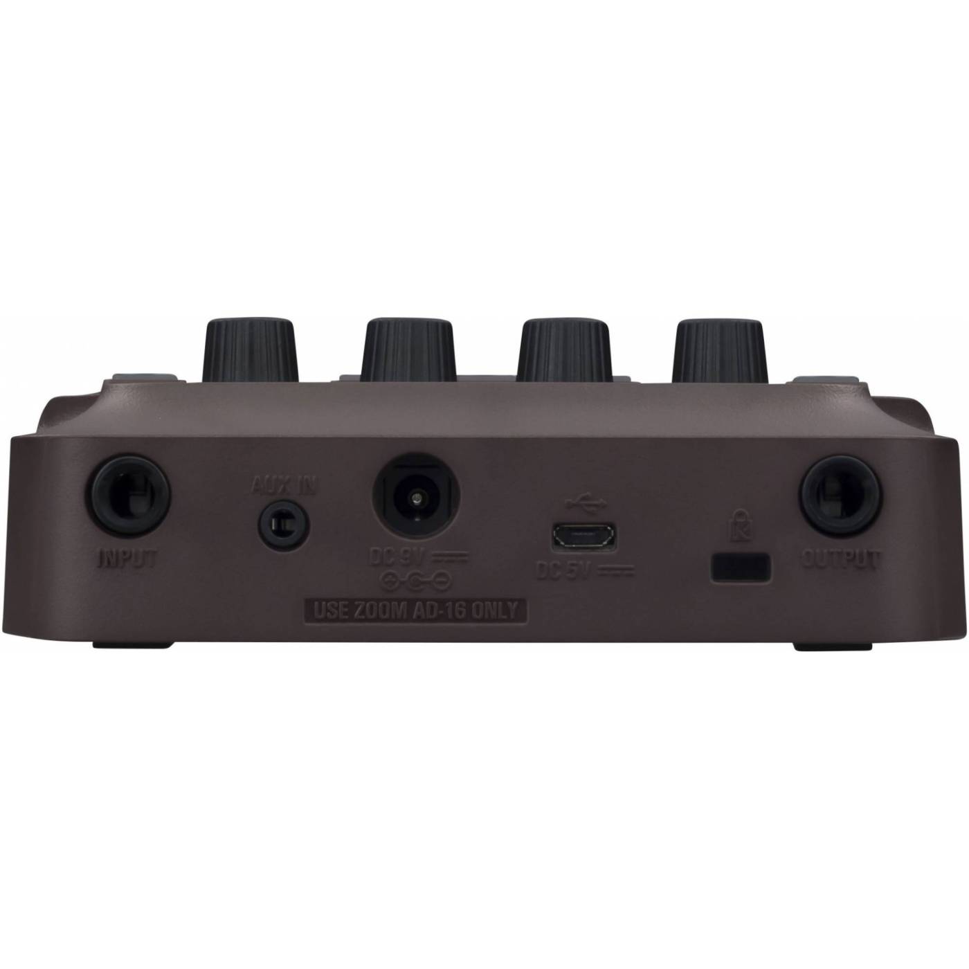 Питание: Сетевой адаптер DC 9В (минус в центре), 500 мА (Zoom AD-16). 4 батарейки AA (~18 часов работы с использованием алкалиновых батареек при выключенной подсветке дисплея)