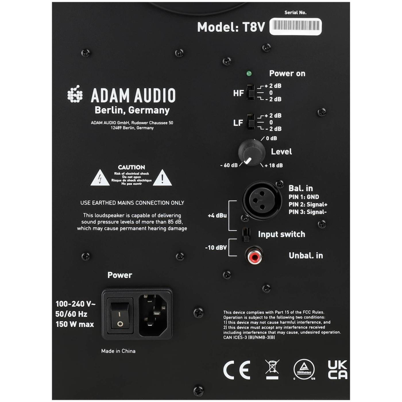 Акустическая система (студийный монитор) [11103010] Adam [T8V] активная 2-х полосная, 70 + 20 Вт, 33 - 25000 Гц, 118 дБ, 8" + 2", XLR, RCA