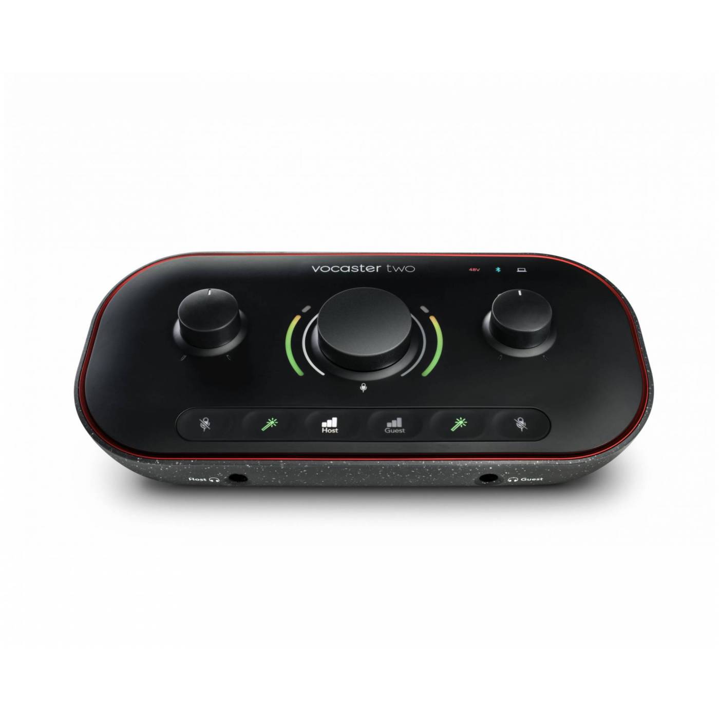 Аудиоинтерфейс разработан так, чтобы вы могли приступить к работе сразу после подключения через кабель USB-C - USB-A и быстрой настройки. Благодаря фантомному питанию +48 В можно подключать микрофоны XLR всех типов и усиливать их до 70 дБ. Выравнивание уровня осуществляется автоматически с помощью Vocaster Two- просто нажмите и удерживайте кнопку Auto Gain во время выступления (эта функция может использоваться как для ведущего, так и для гостя). Естественно, вы также можете самостоятельно выполнять тонкую настройку, а светодиодное кольцо на ручке Mic Gain предоставляет информацию о громкости. Одним словом, подбор уровня усиления еще никогда не был таким простым!