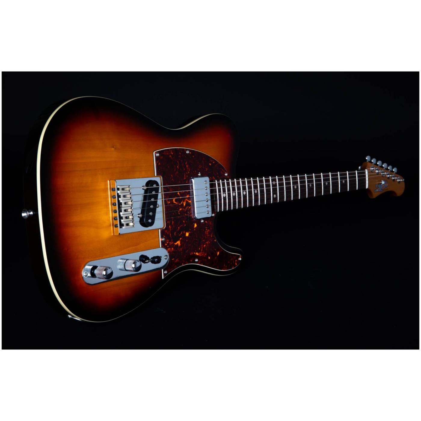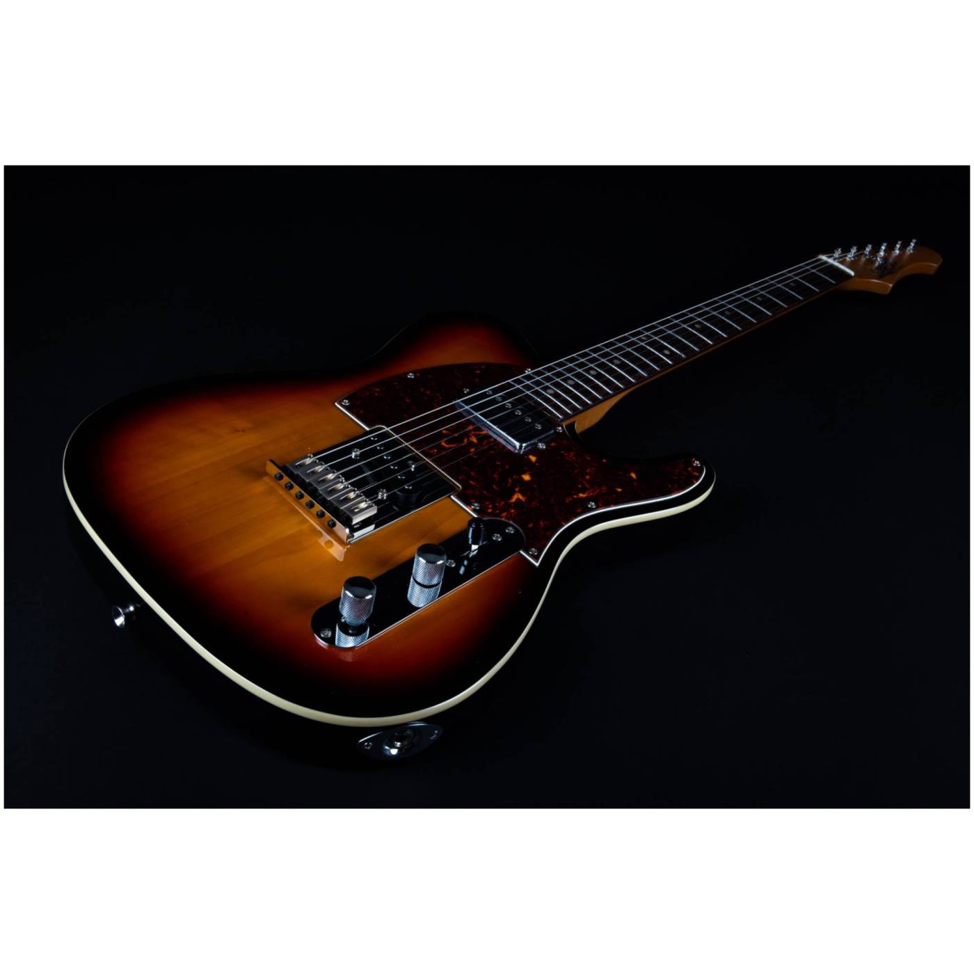 Гриф выполнен из печеного клена (roasted maple). При такой обработке поры дерева максимально сжимаются и в процессе использования вода уже не будет выходить, гриф не сожмется и лады не повылазят вне зависимости от влажности и смены температуры. Плюс такое дерево выглядит очень красиво. Накладка на гриф выполнена из палисандра. Конфигурация звукоснимателей у модели JET JT-350 SB R - SH Alnico.