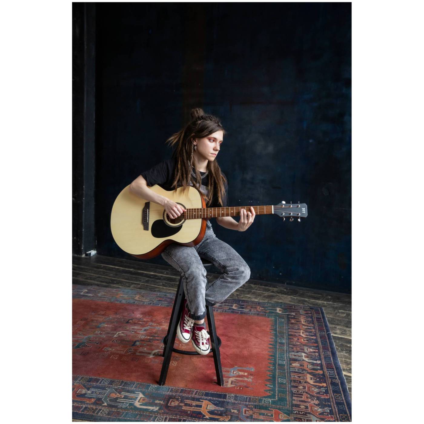 Модель JET JJ-250 OP это акустическая гитара, вполненая в корпусе Джамбо с современным, ультратонким покрытием Open pore, ставшим настоящим трендом у производителей гитар. Дека с таким покрытием становится легкой и отзывчивой, что очень нравится музыкантам.