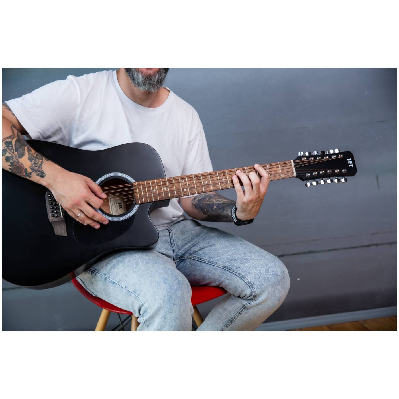 JET JDEC-255/12 BKS - Уценка-деформация верхней деки,трещина пятки грифа- 12-струнная эл.-ак. гитара купить оптом - Архив товаров