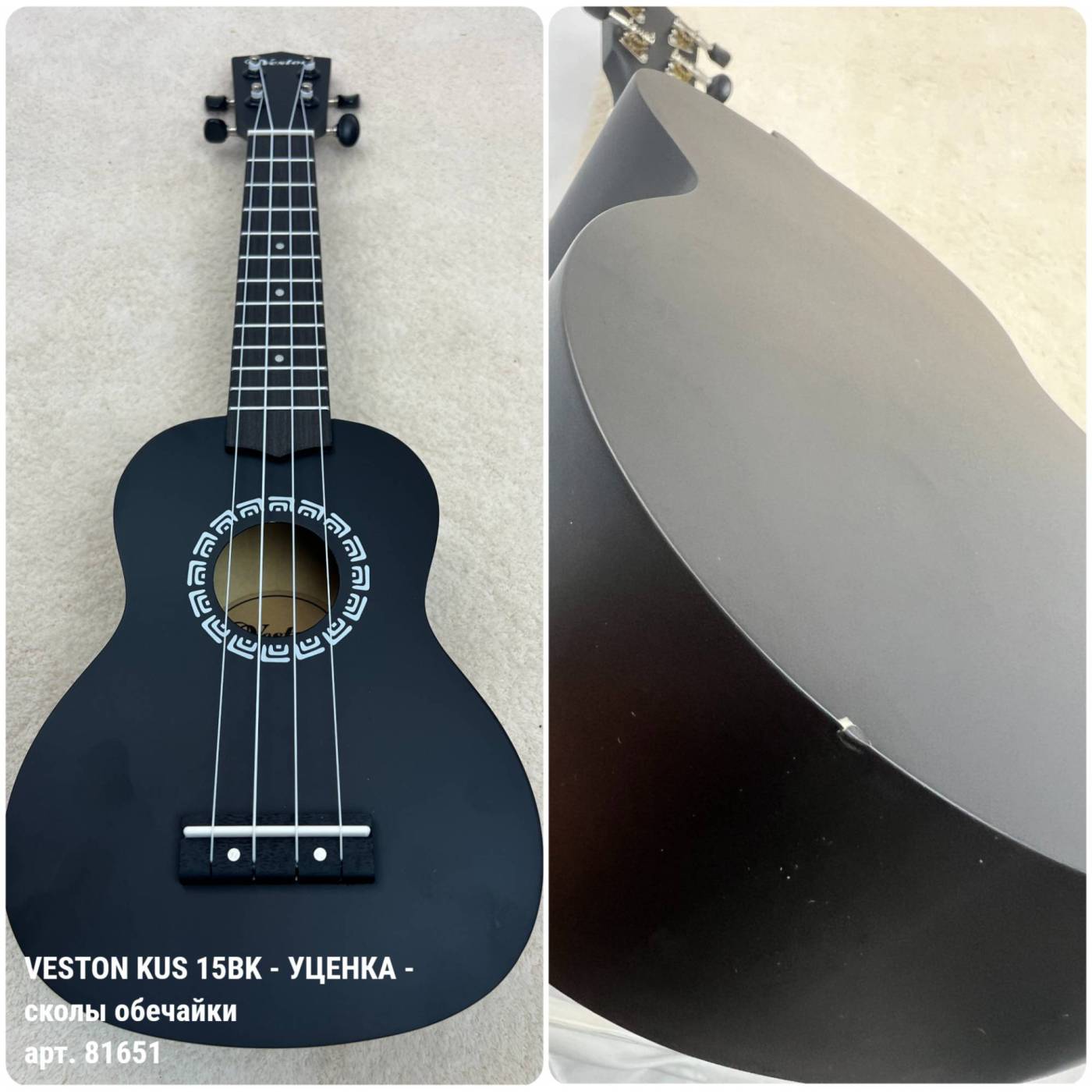 VESTON KUS 15BK - Уценка-сколы обечайки- укулеле сопрано, цвет черный, Ограниченно годен купить оптом