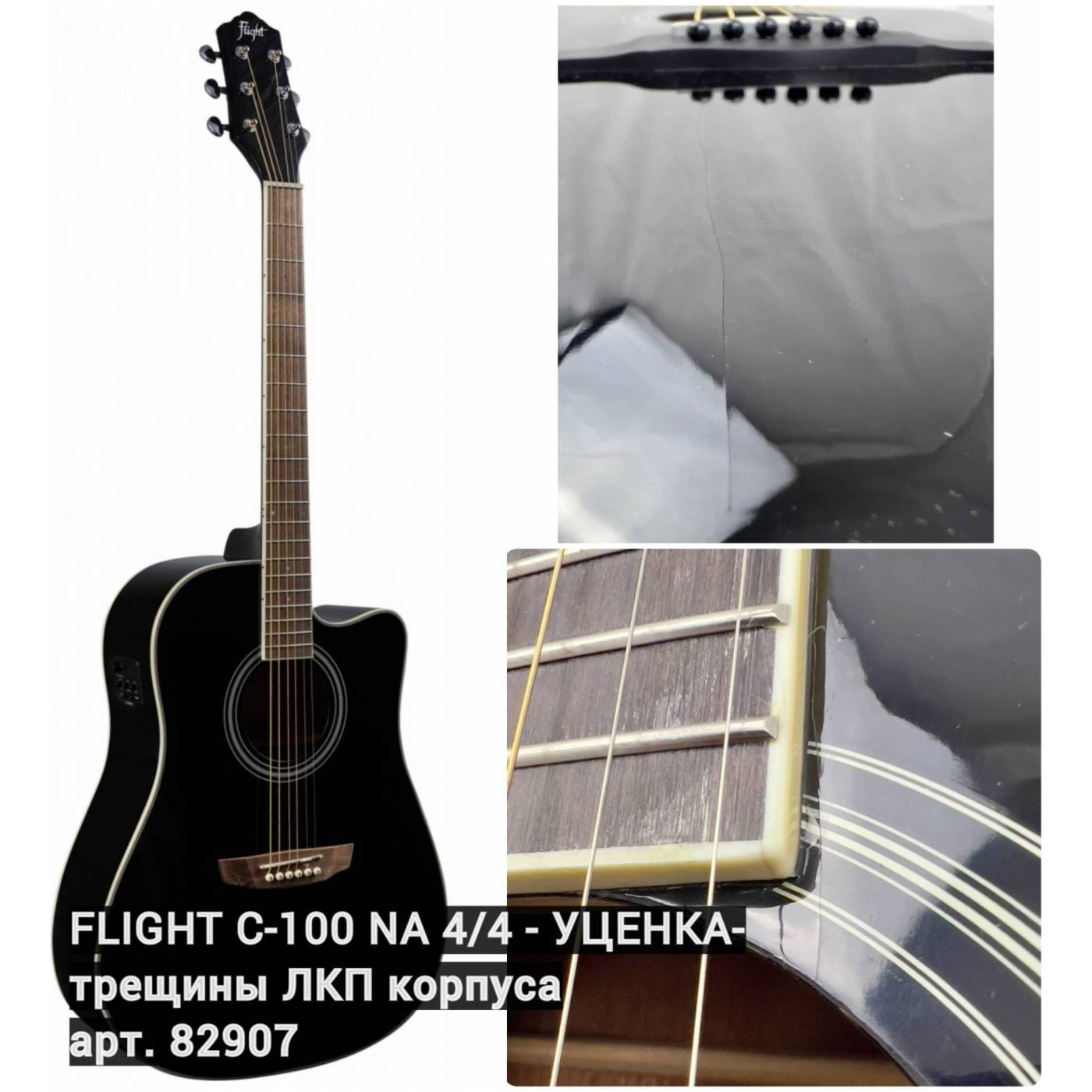 FLIGHT AD-200 CEQ BK гитара электроакустическая - УЦЕНКА- 548 070 025- трещины ЛКП корпуса, кривой г