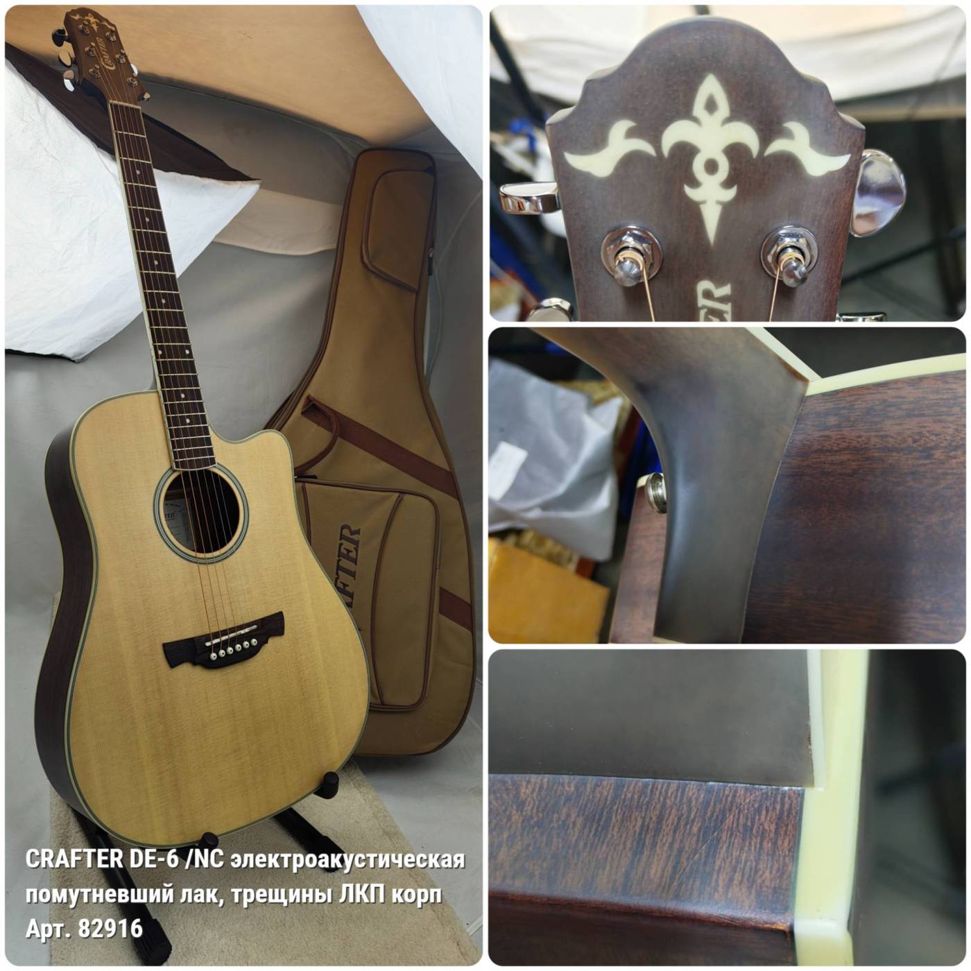 CRAFTER DE-6 /NC гитара электроакустическая - УЦЕНКА- 548 071 028- помутневший лак, трещины ЛКП корп