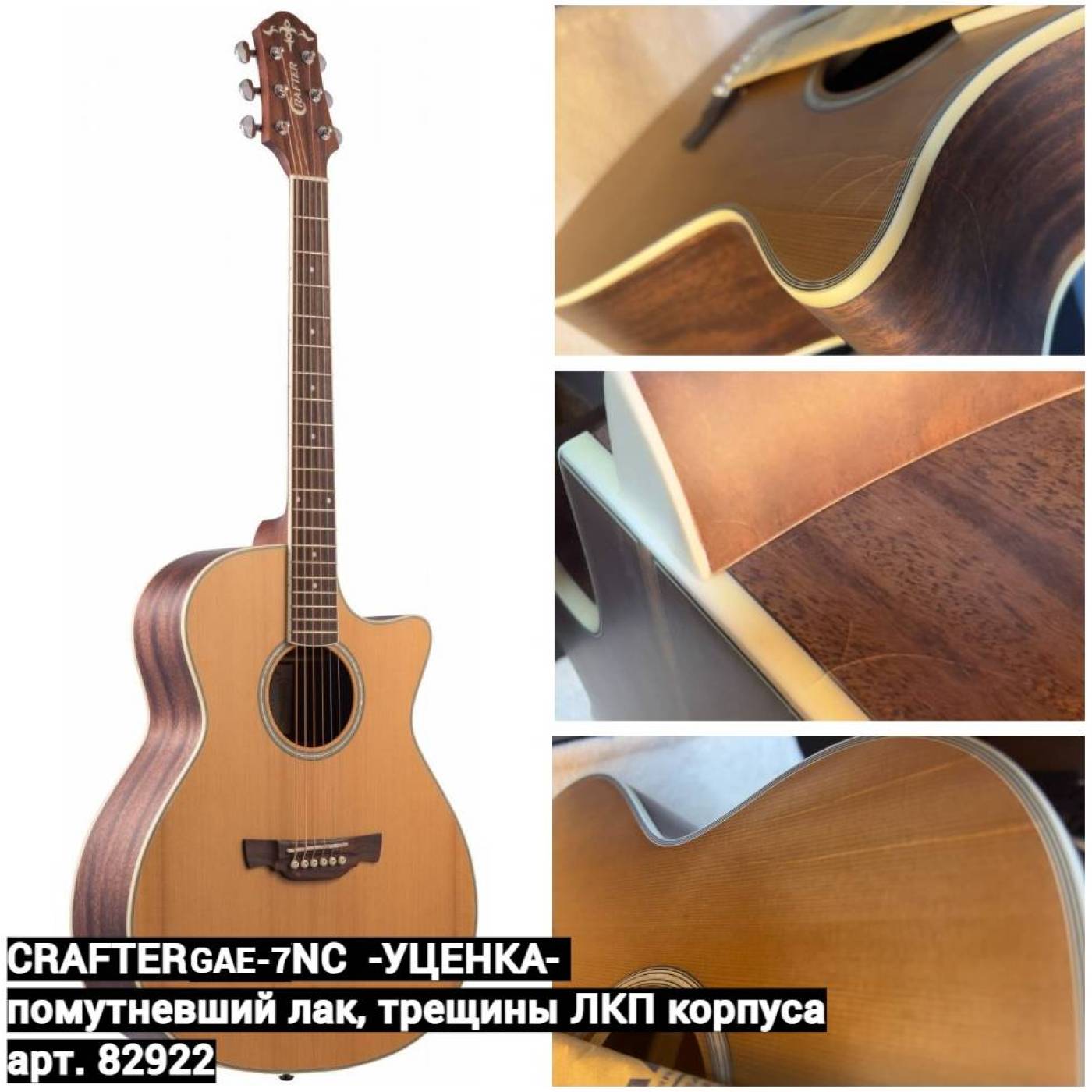 CRAFTER GAE-7 /NC гитара электроакустическая - УЦЕНКА- 548 071 036- помутневший лак, трещины ЛКП кор