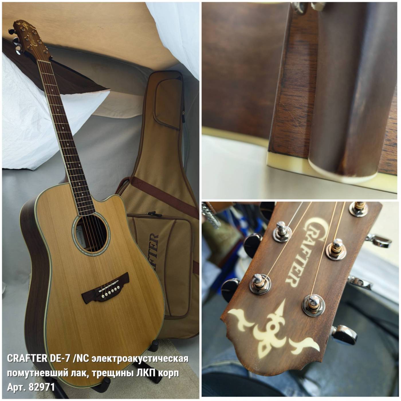 CRAFTER DE-7 /NC гитара электроакустическая - УЦЕНКА- 548 071 075- помутневший лак, трещины ЛКП корп