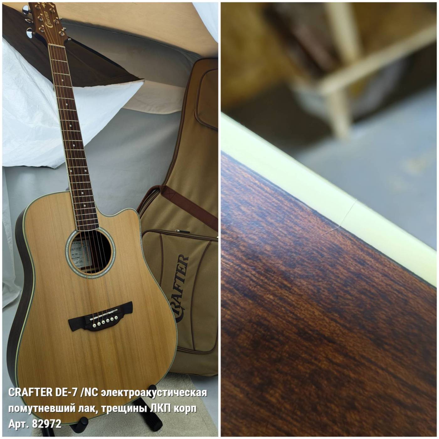 CRAFTER DE-7 /NC гитара электроакустическая - УЦЕНКА- 548 071 077- помутневший лак, трещины ЛКП корп