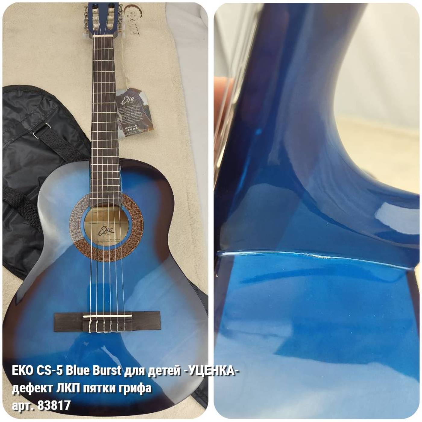 EKO CS-5 Blue Burst гитара классическая - УЦЕНКА- 548 070 848- дефект ЛКП пятки грифа