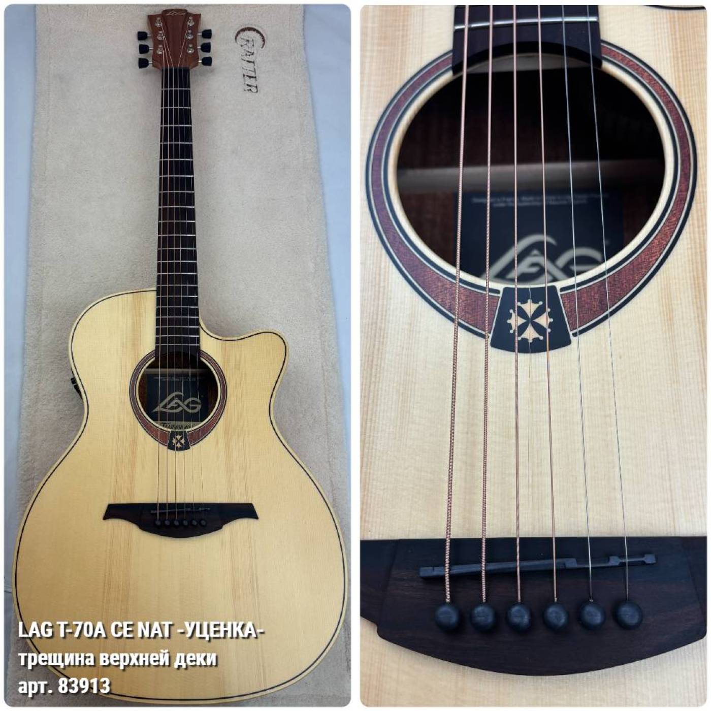 LAG T-70A CE NAT гитара электроакустическая - УЦЕНКА- 548 071 535- трещина верхней деки
