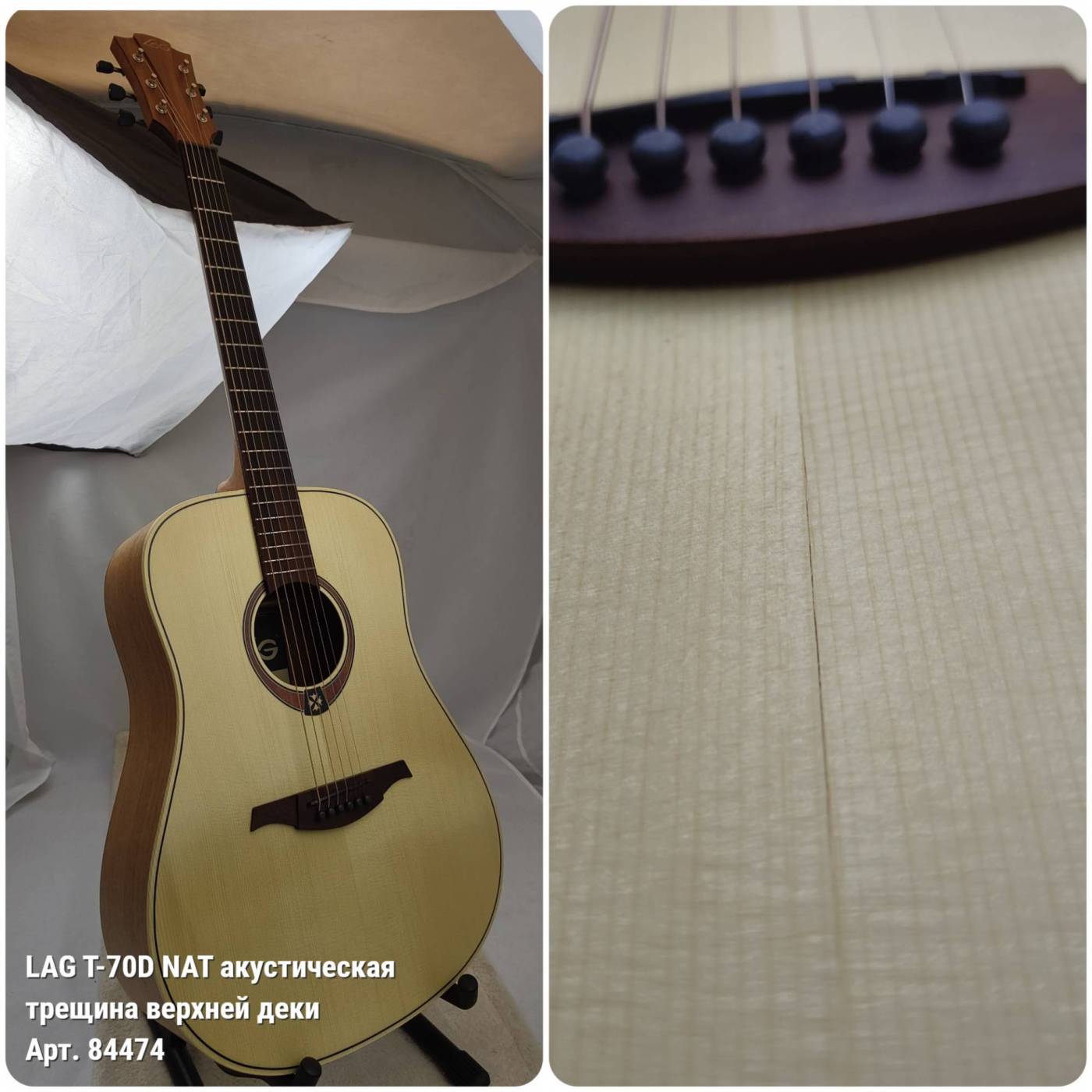 LAG T-70D NAT гитара акустическая - УЦЕНКА- 548 070 658- трещина верхней деки