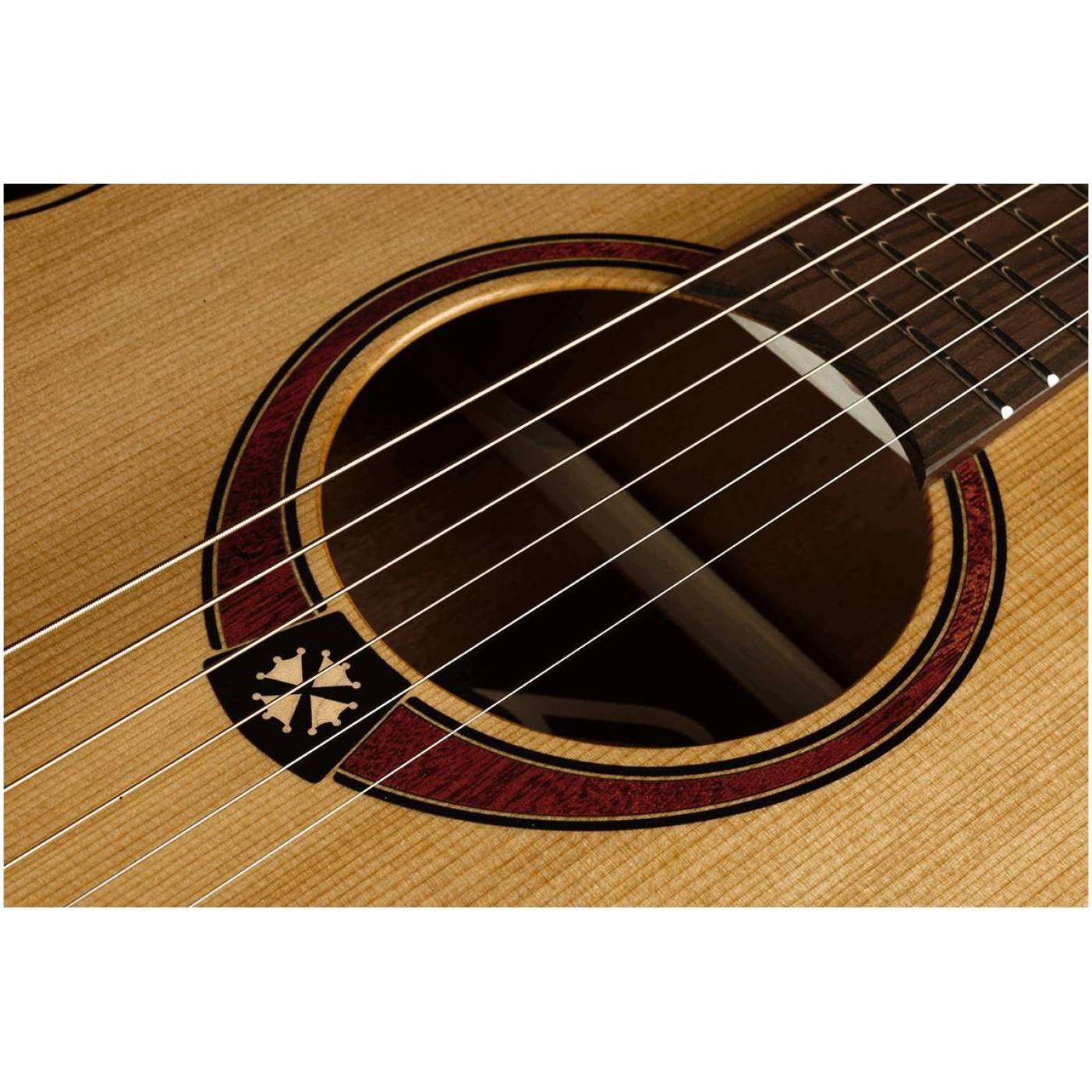Верхняя дека гитары LAG GLA T170D выполнена из массива кедра класса АА, специально подобранного для получения глубокого и теплого звучания инструмента. Все гитары LAG имеют стильный фирменный дизайн. Как знак соединения с Францией и ее историей, гитары LAG носят окситанский крест, вплетенный в розетку.