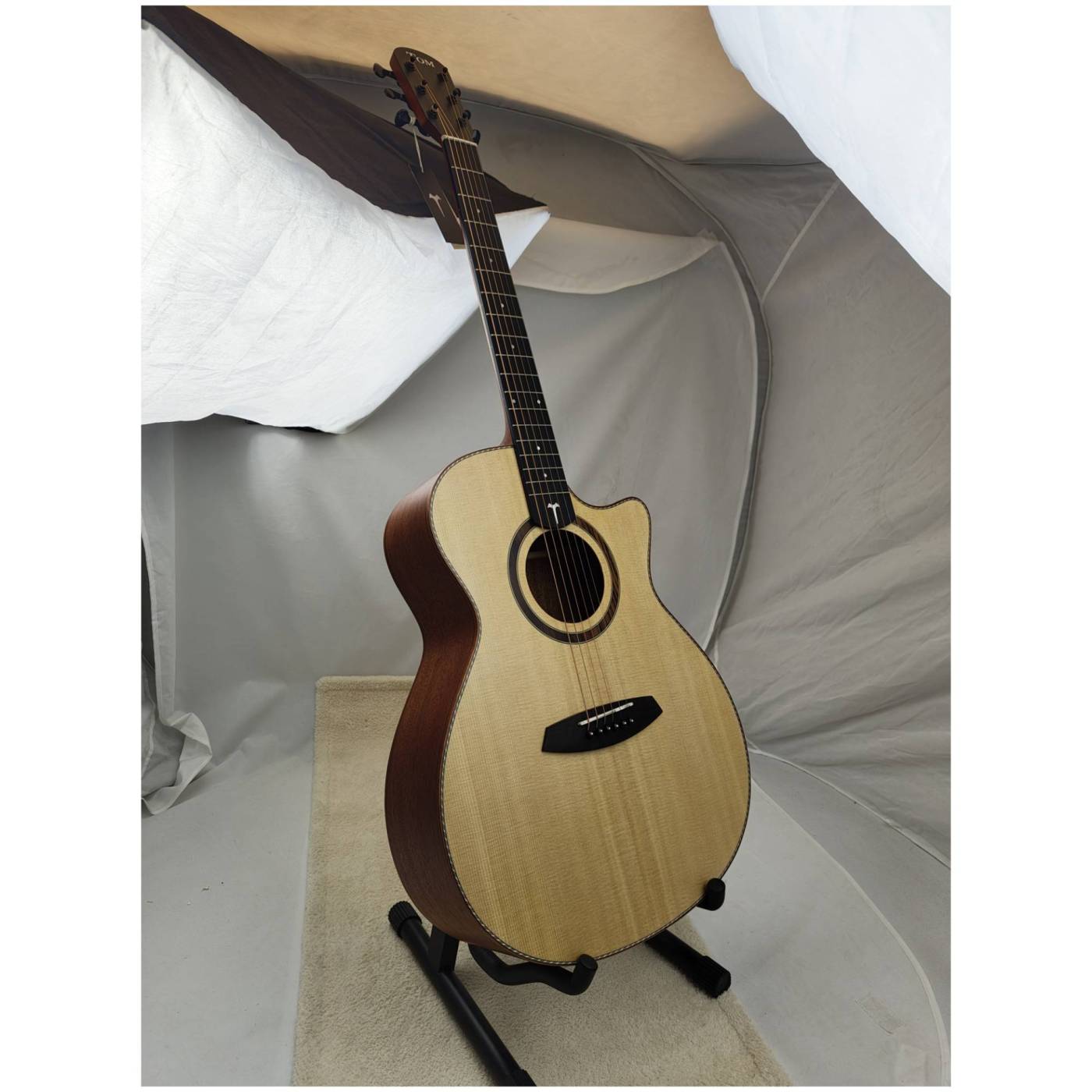TOM GA-T1M акустическая гитара в корпусе гранд аудиториум с вырезом. Верхняя дека из массива ели и корпус из красного дерева. В комплекте качественный чехол.
