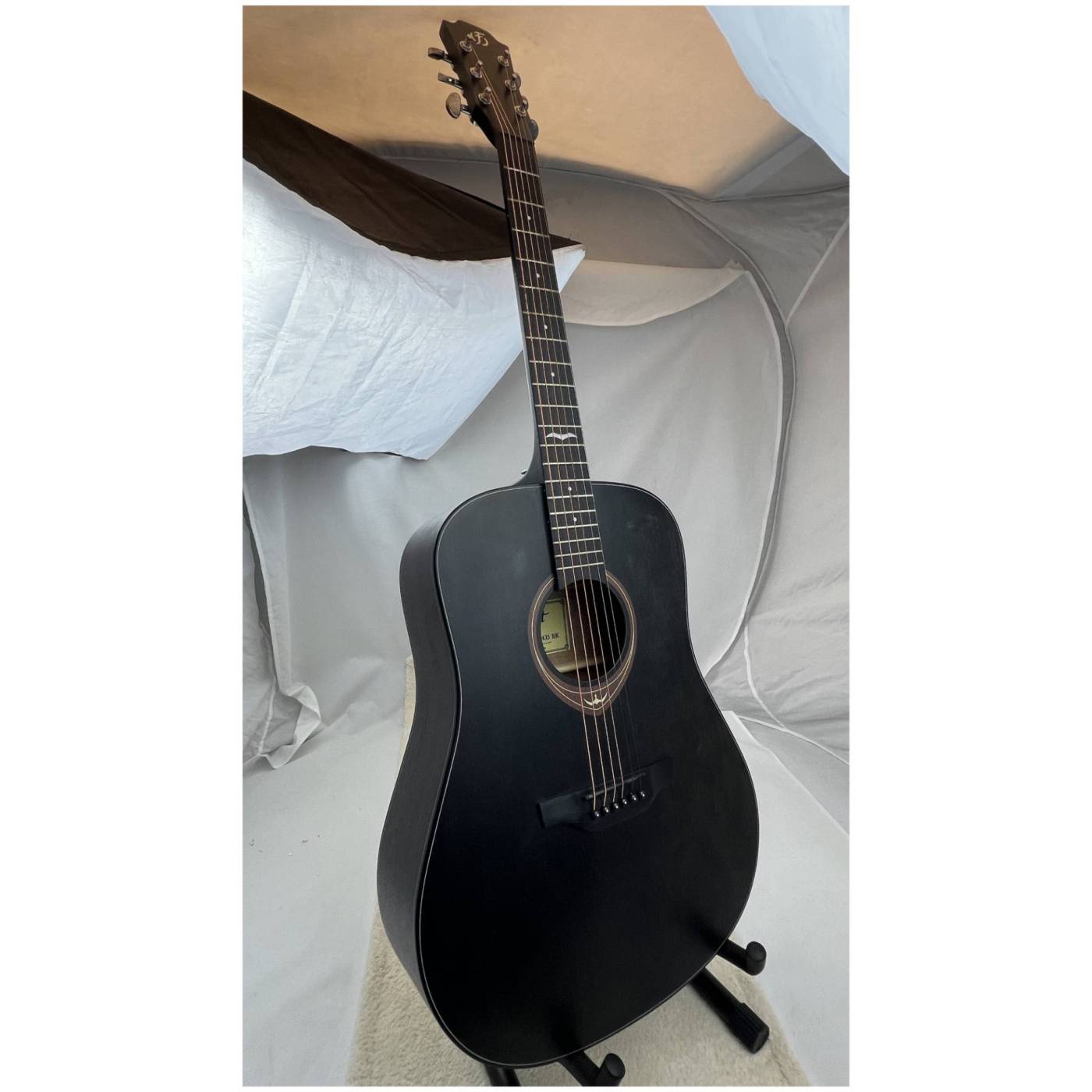 Нижняя дека и обечайки гитары FLIGHT D-435 BK изготовлены из красного дерева, которое не только хорошо сочетается с елью внешне, но и дополняет её яркий прозрачный звук своей теплотой и певучестью. Корпус гитары покрашен в черный матовый цвет.