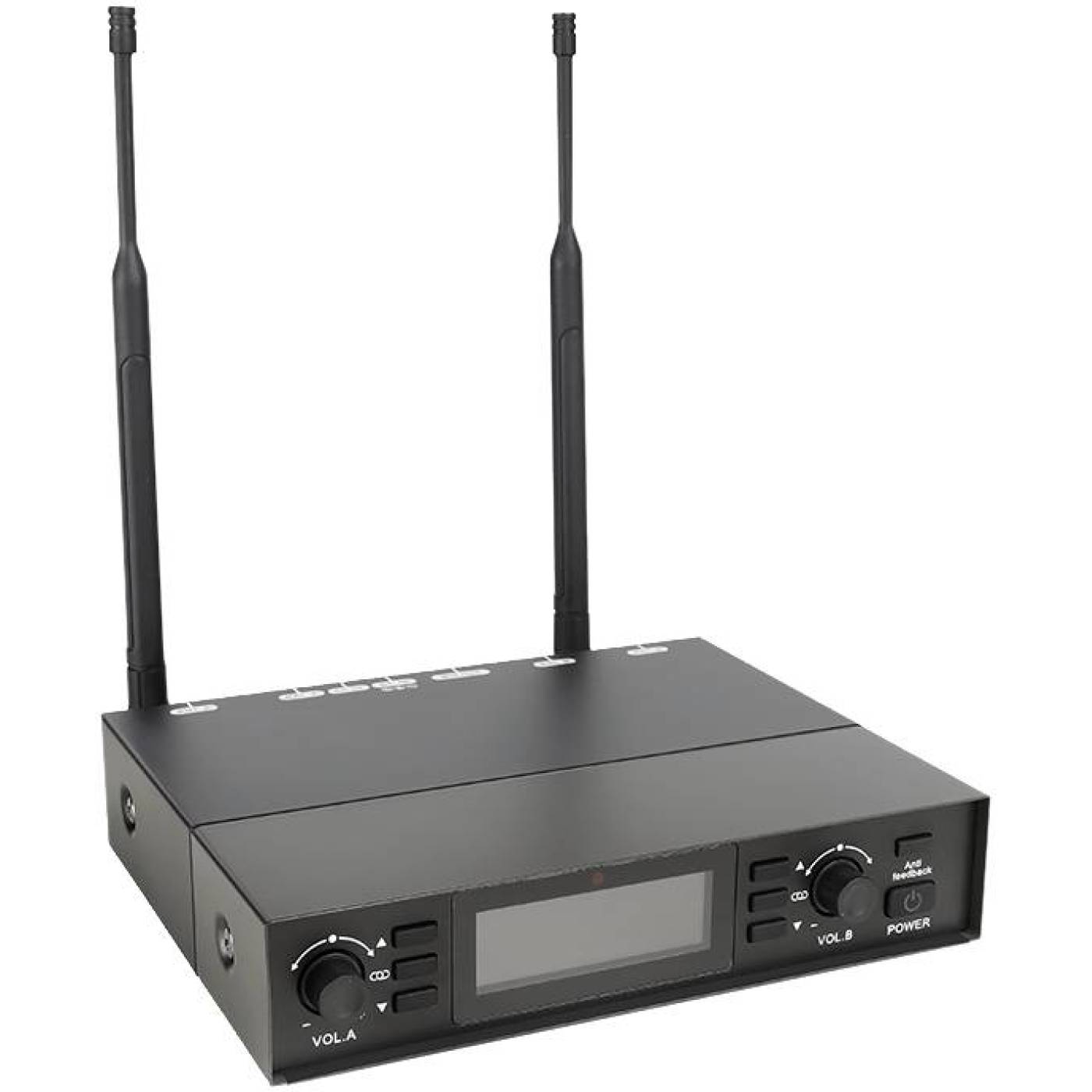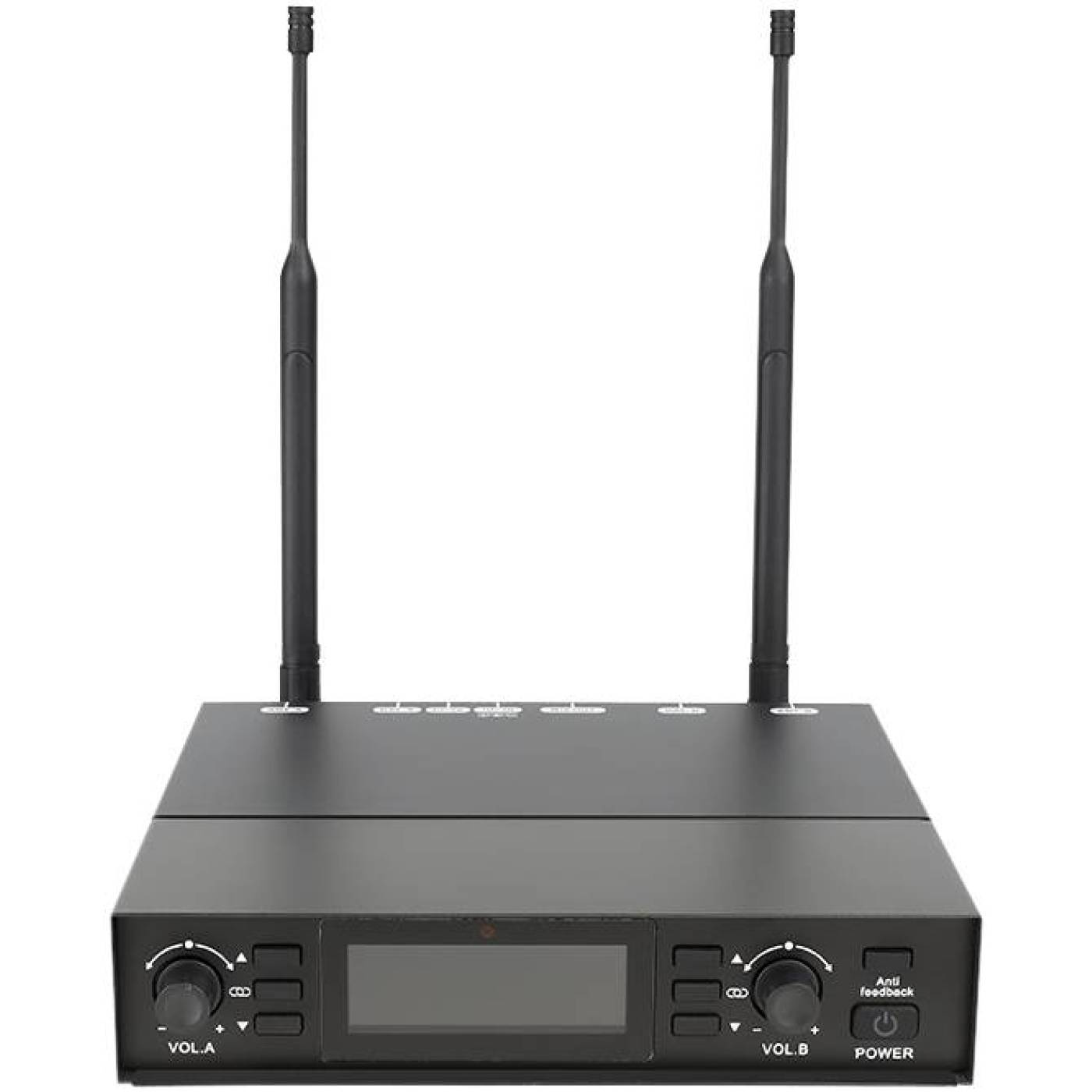 Axelvox DX800FK — высококачественная двухканальная беспроводная цифровая вокальная радиосистема профессионального уровня с DSP с функцией подавления обратной связи (Anti feedback), состоящая из двух микрофонов и двухканального приемника. Станция способна анализировать эфир и автоматически находить оптимальные (свободные) частоты для работы. Расширенный частотный диапазон 650 - 758 МГц.