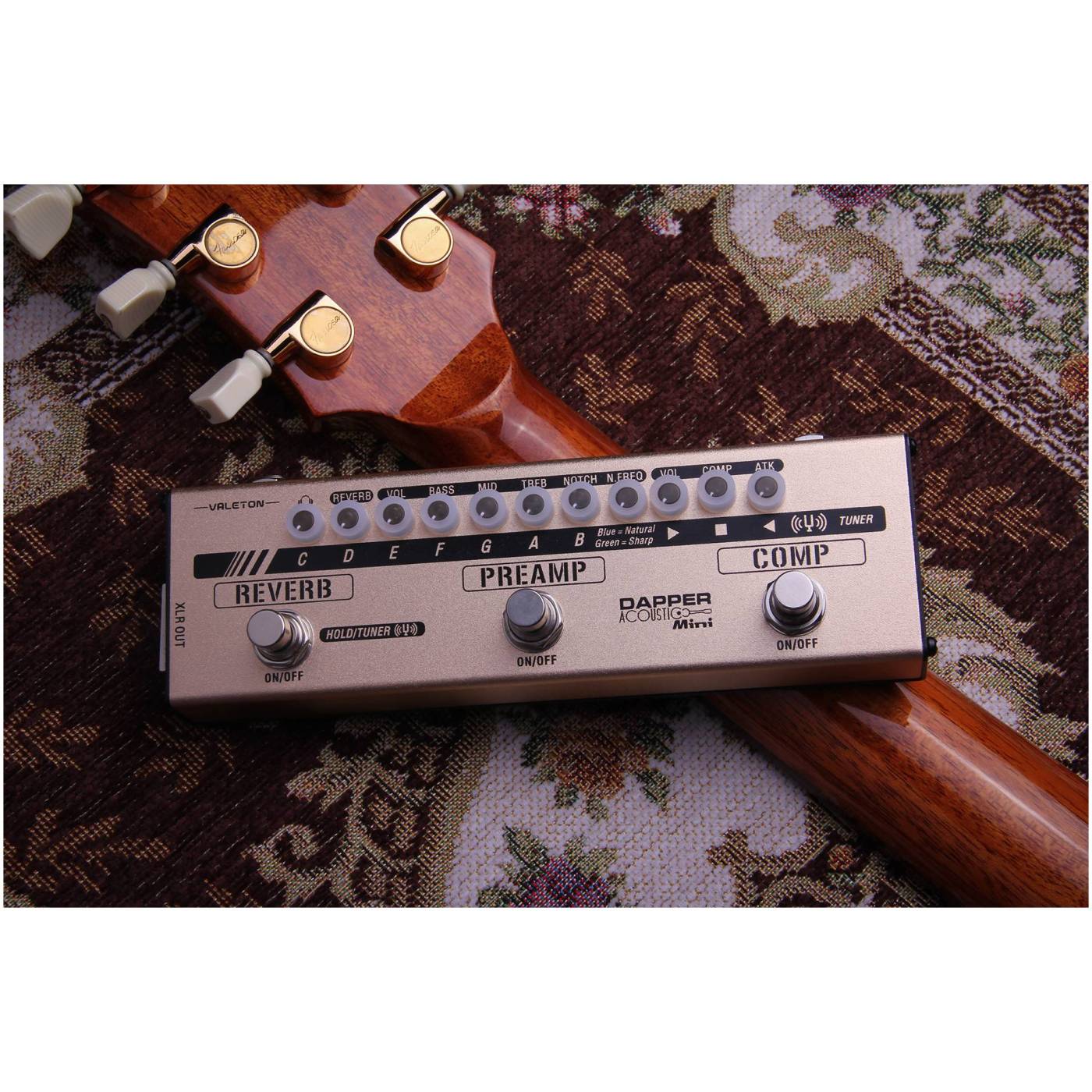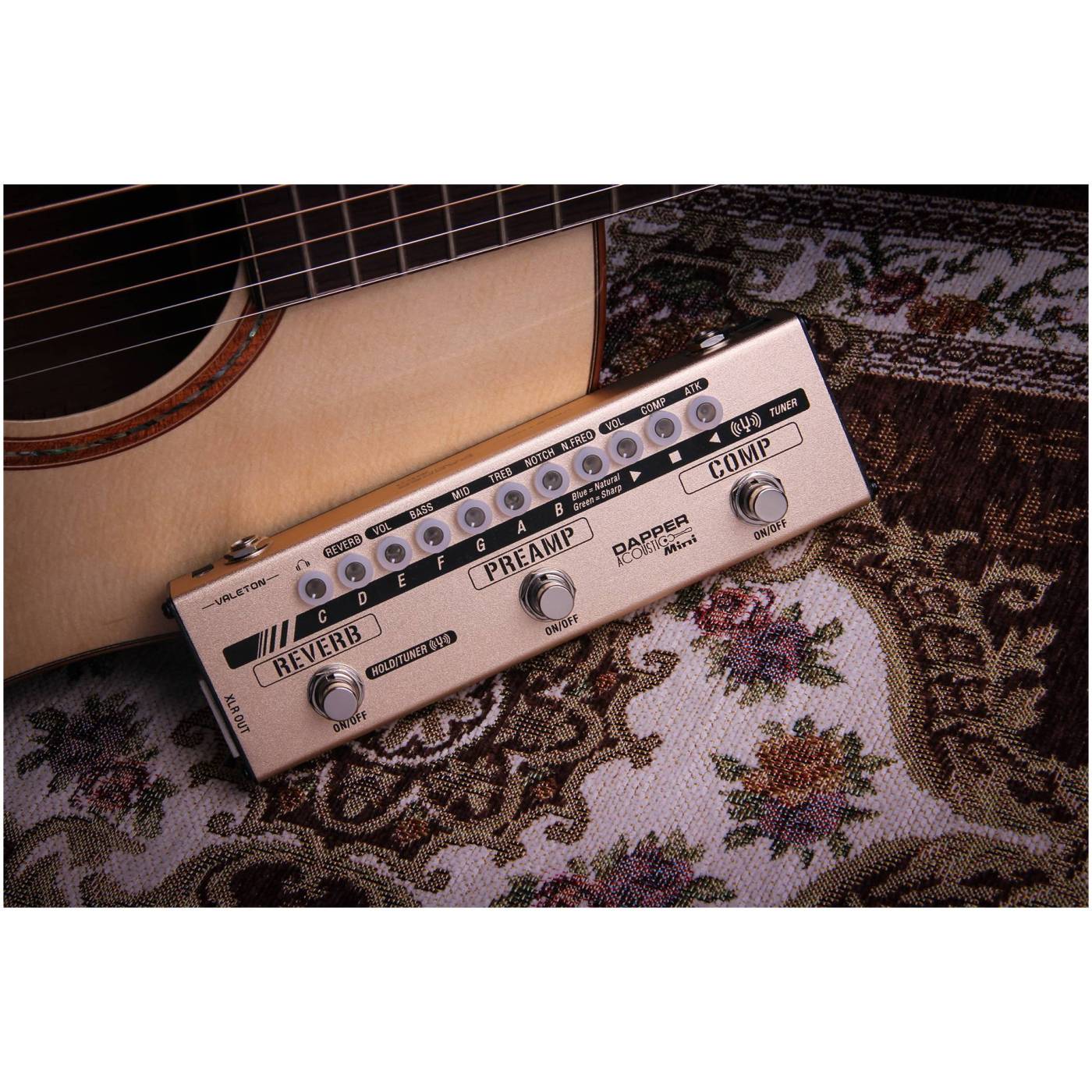 Напольная компактная гитарная педаль Dapper Acoustic Mini Valeton [MES-4] мульти-эффектов для акустической гитары, тюнер, премап с эквалайзером, симулятор кабинета, compressor и reverb эффекты