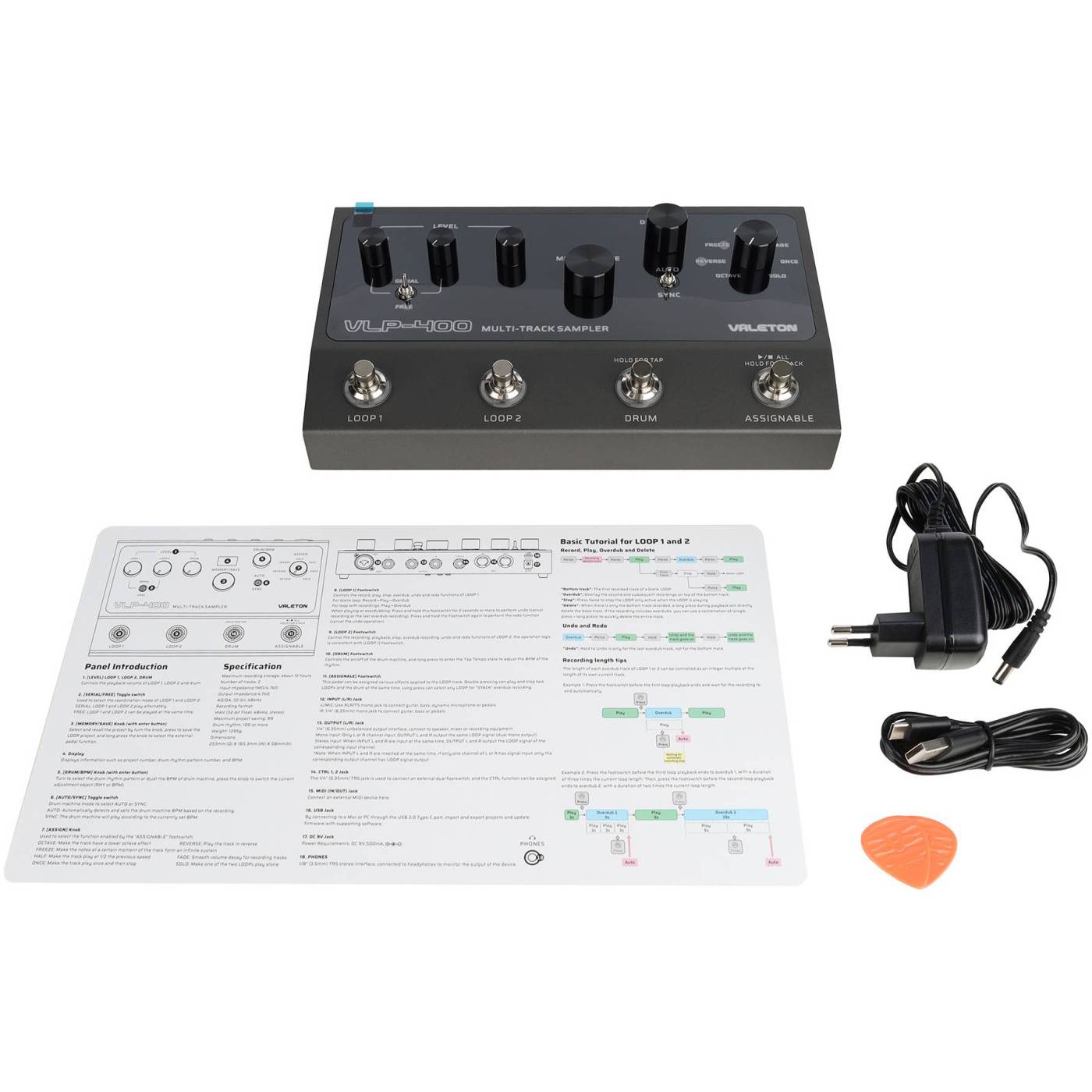 Напольный лупер на 7 часов записи Valeton [VLP-400] AD/DA:32-bit/48 kHz, четыре футсвича, 7 эффектов, барабанные пресеты, программа для управления на компьютере