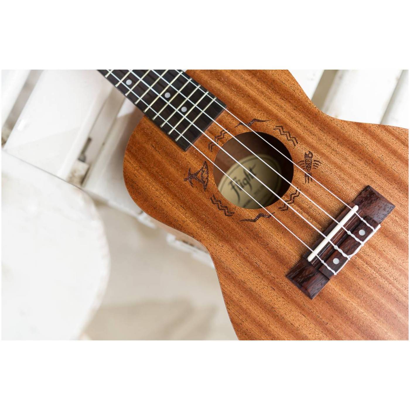 Серия Flight NU - это так называемый entry level, то есть начальный уровень укулеле. Все модели изготовлены из древесины Sapele (Сапеле), обладающей интересной структурой коричневого цвета с золотисто-ореховым оттенком.