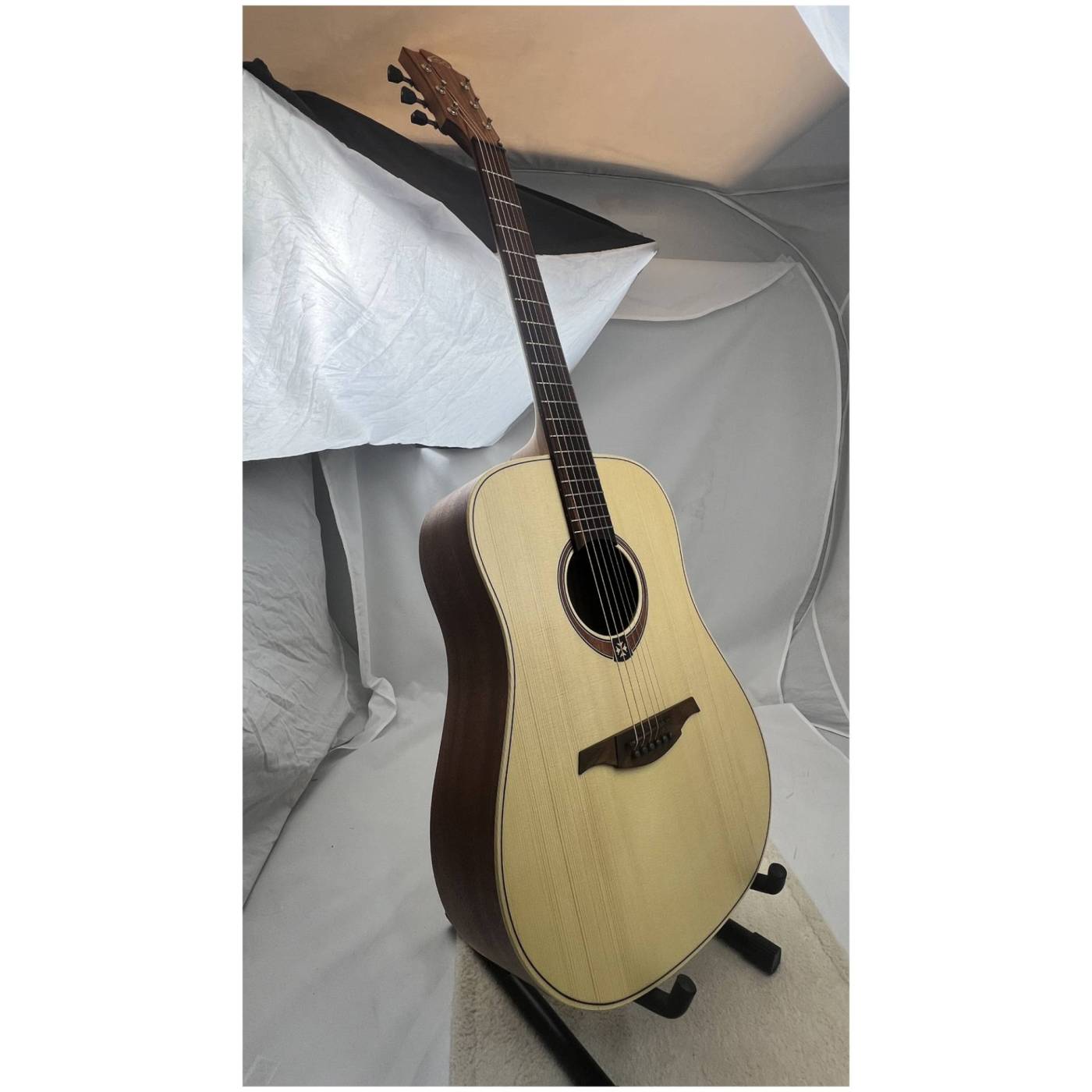 LAG GLA T70D NAT выделяется на фоне гитар начального уровня своим звучанием. Это достигается за счет верхней деки из массива ели, которая отличается звонким и громким звучанием. Качество звука в сочетании с удобством игры на инструменте является идеальным вариантом для начинающего музыканта.