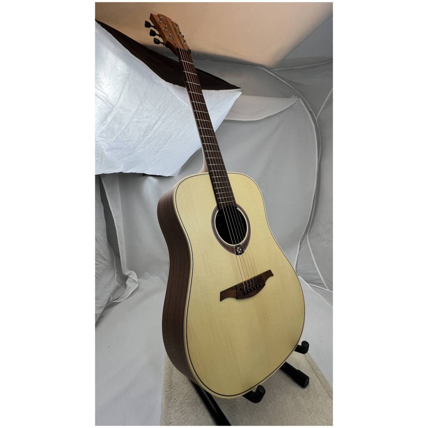 LAG GLA T70D NAT выделяется на фоне гитар начального уровня своим звучанием. Это достигается за счет верхней деки из массива ели, которая отличается звонким и громким звучанием. Качество звука в сочетании с удобством игры на инструменте является идеальным вариантом для начинающего музыканта.