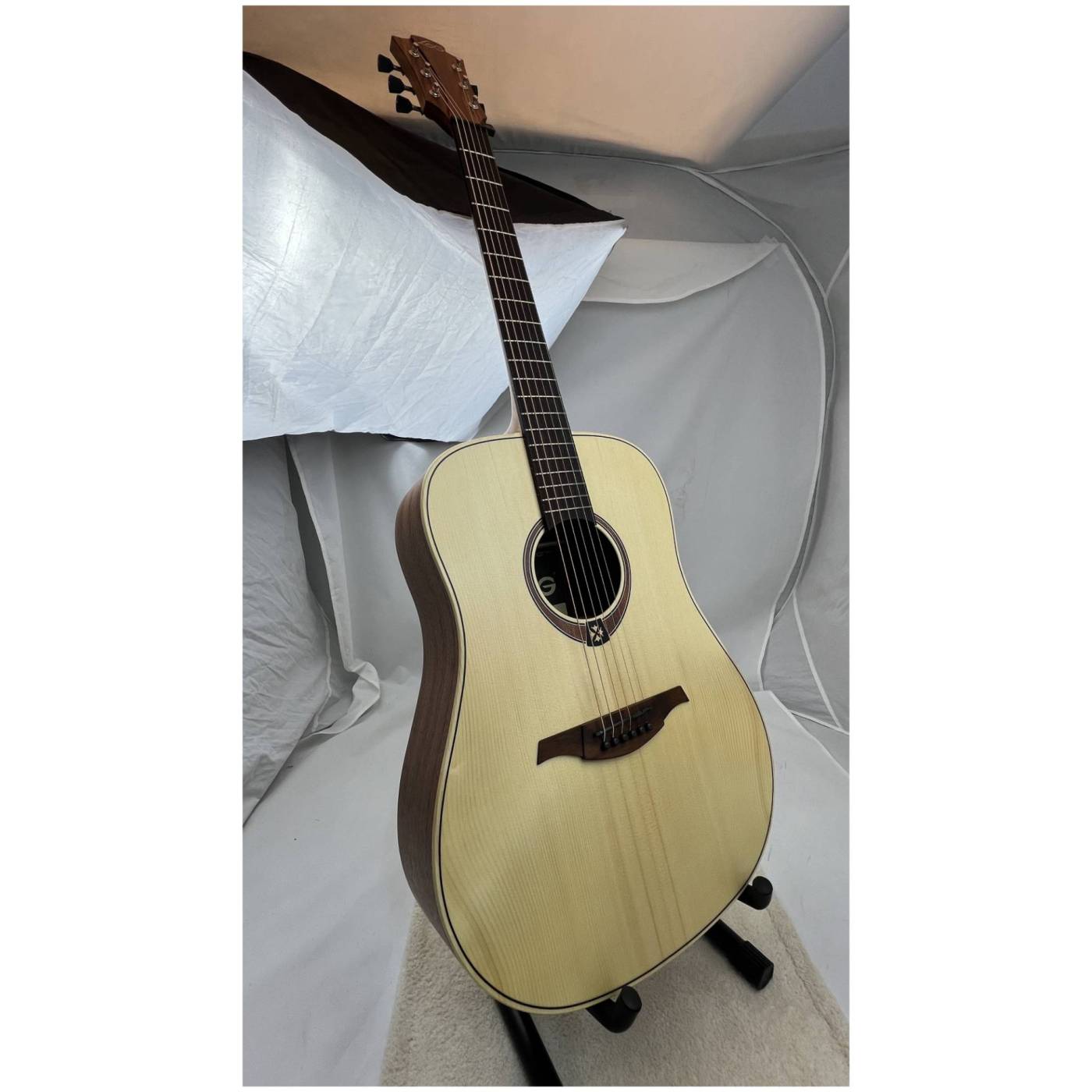 LAG GLA T70D NAT выделяется на фоне гитар начального уровня своим звучанием. Это достигается за счет верхней деки из массива ели, которая отличается звонким и громким звучанием. Качество звука в сочетании с удобством игры на инструменте является идеальным вариантом для начинающего музыканта.