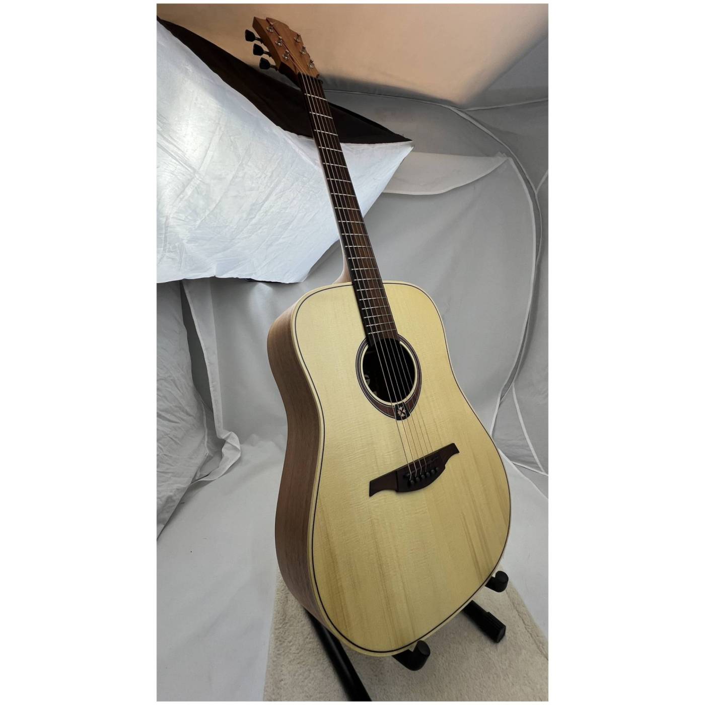 LAG GLA T70D NAT выделяется на фоне гитар начального уровня своим звучанием. Это достигается за счет верхней деки из массива ели, которая отличается звонким и громким звучанием. Качество звука в сочетании с удобством игры на инструменте является идеальным вариантом для начинающего музыканта.