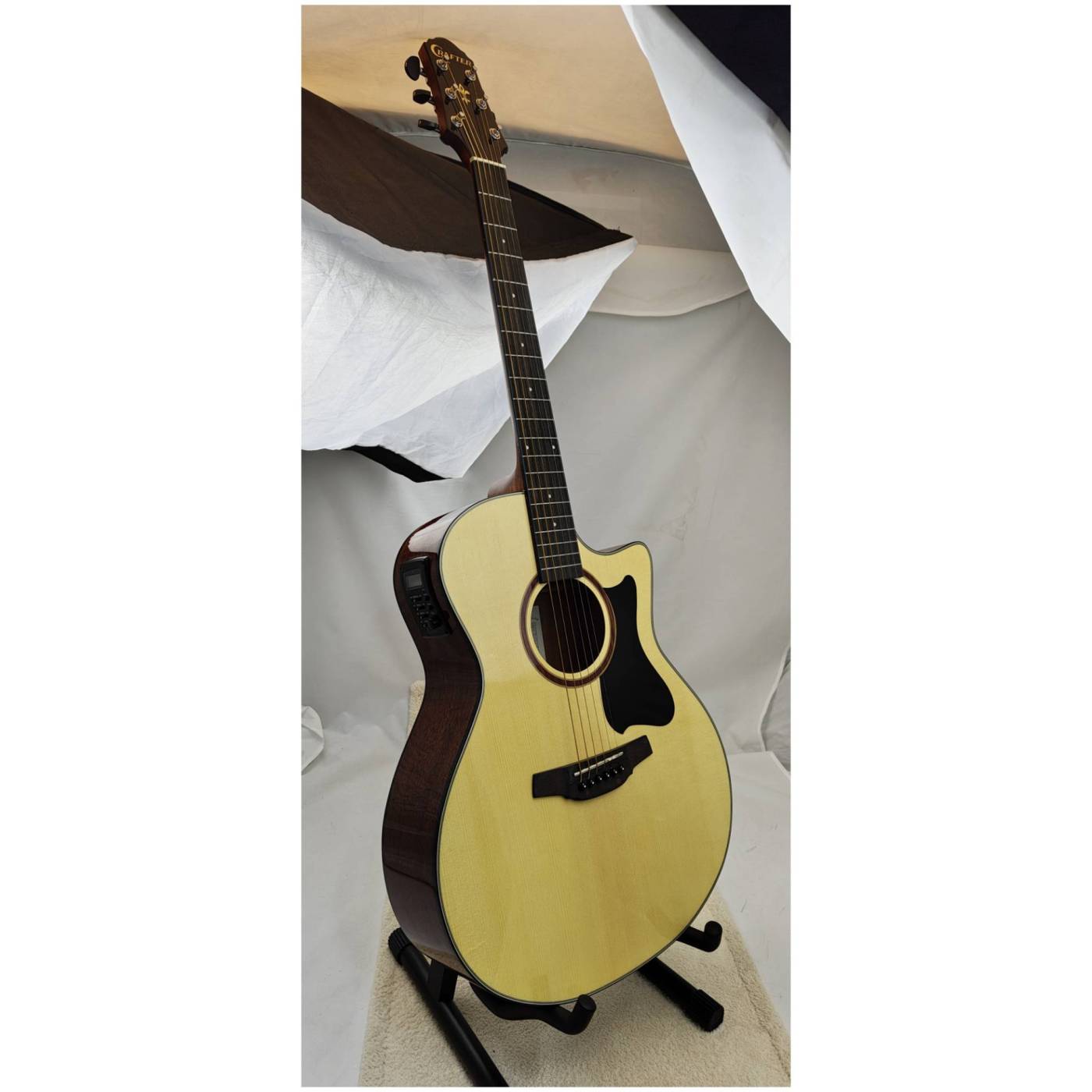 CRAFTER HG-250CE - электроакустическая гитара с вырезом, которая подойдет начинающим музыкантам и обучающимся игре на инструменте. Гитара имеет форму корпуса «Grand Auditorium».