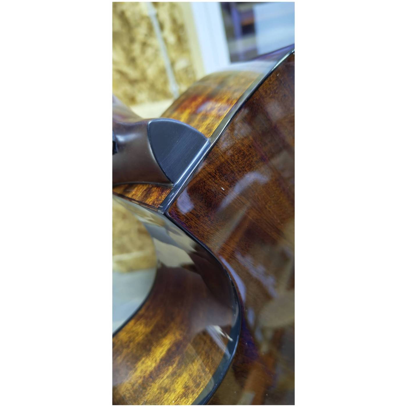 Нижняя дека и обечайки из красного дерева, благодаря чему звук приобретает мягкость и глубину.