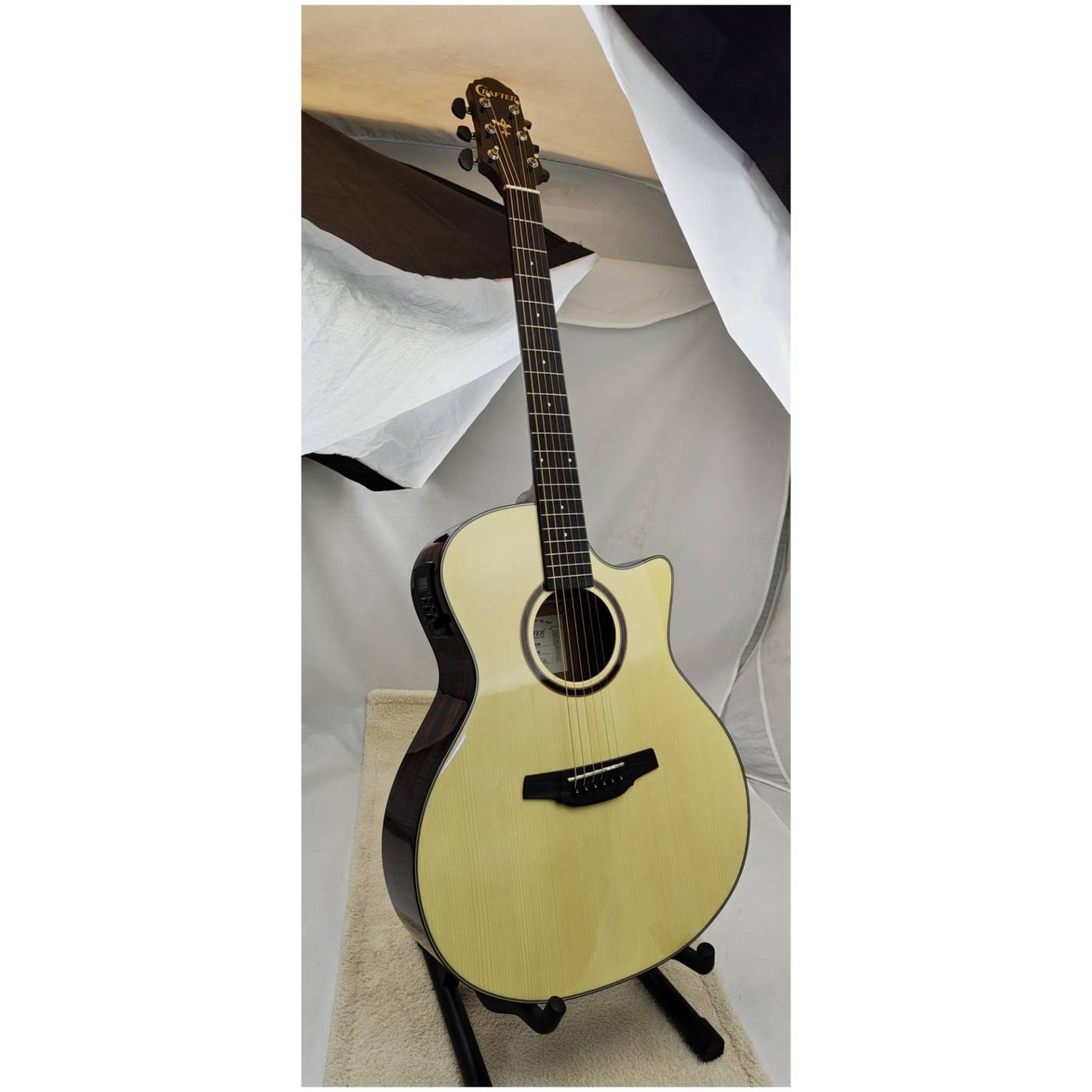 CRAFTER HG-250CE - электроакустическая гитара с вырезом, которая подойдет начинающим музыкантам и обучающимся игре на инструменте. Гитара имеет форму корпуса «Grand Auditorium».