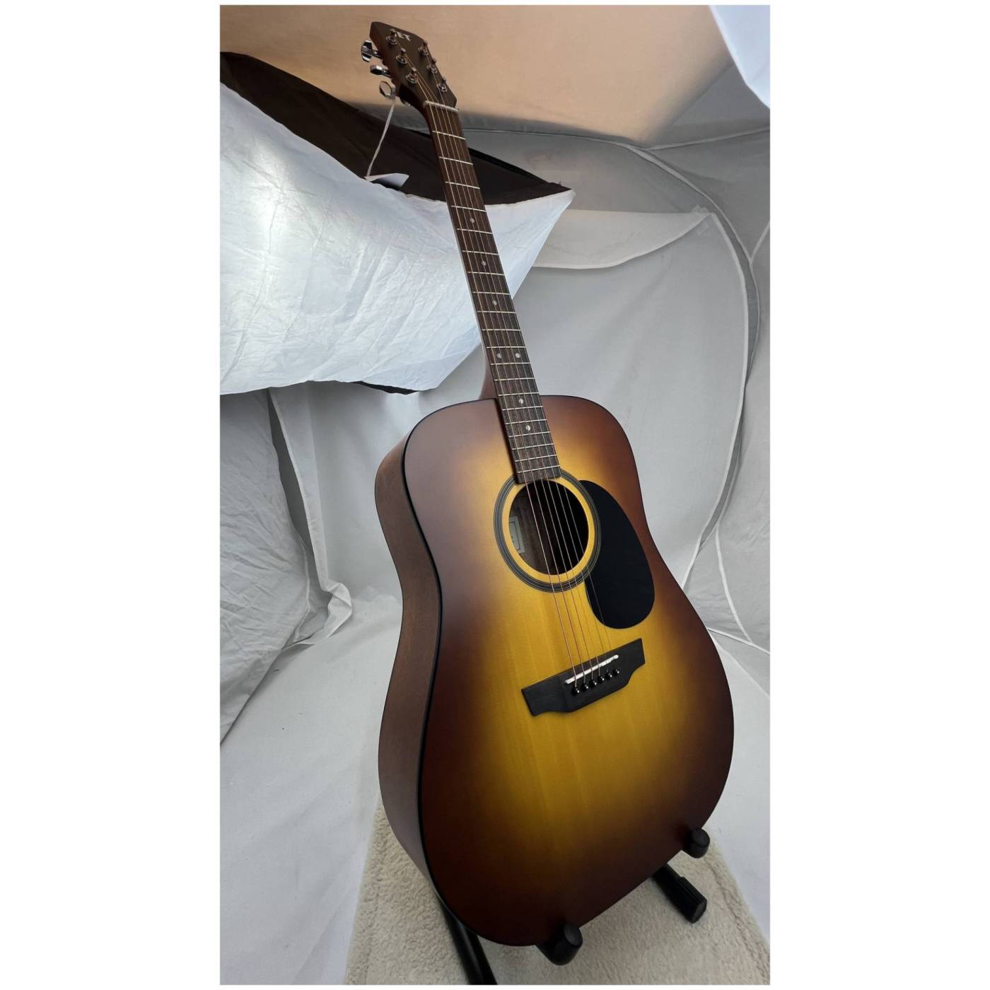 Нижняя дека и обечайка JET JD-255 SSB имеет современное, ультратонкое покрытие Open pore, ставшее настоящим трендом у производителей гитар. Дека с таким покрытием становится легкой и отзывчивой, что очень нравится музыкантам.