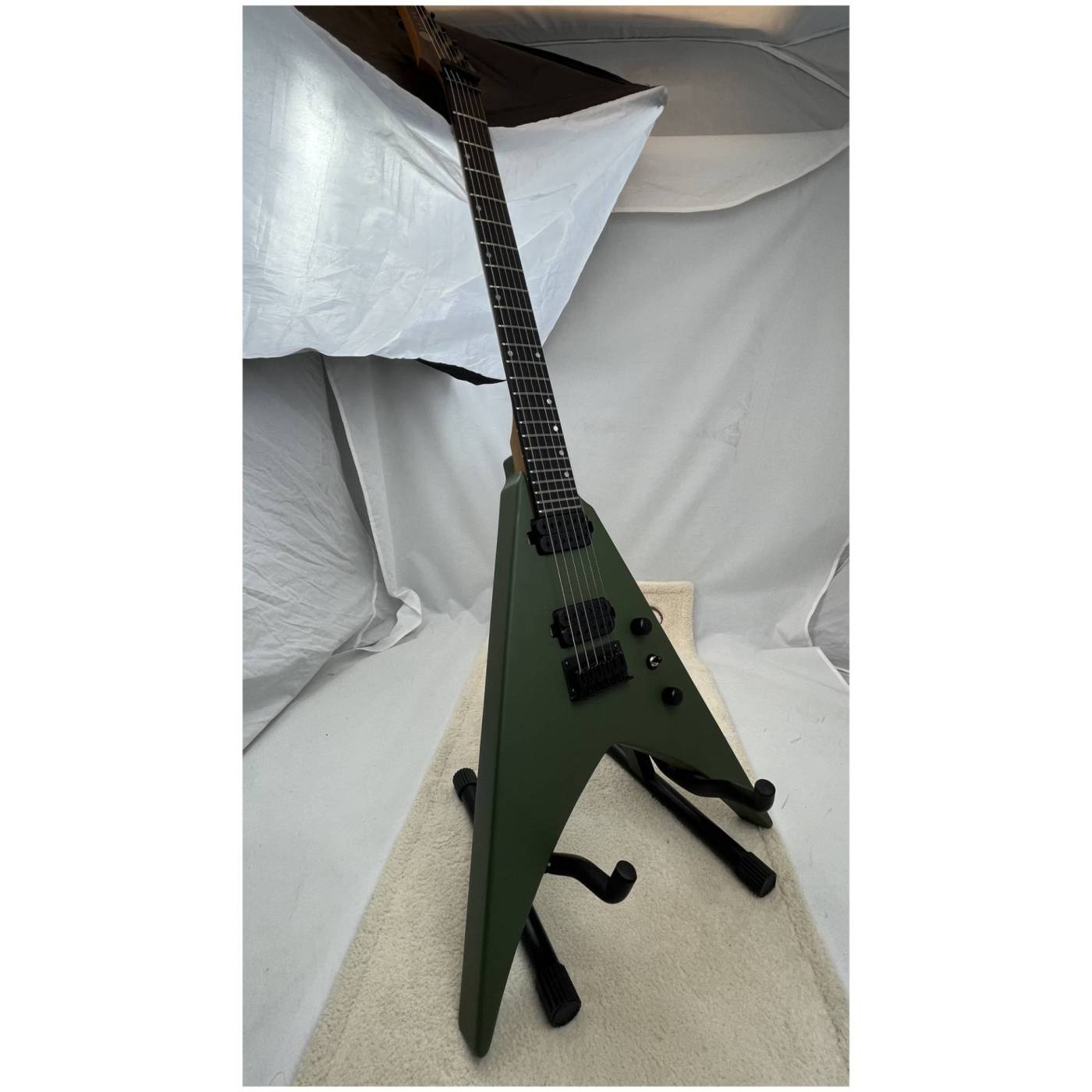 Благодаря корпусу из печеного тополя и грифу из канадского печеного клёна с сатинированной отделкой, V-400 обеспечивает исключительную прочность и комфорт при игре. Накладка грифа из искусственного черного дерева (Ebony Tech) с 24 Jumbo ладами обеспечивает лёгкую скорость и точность для сложных риффов и соло.