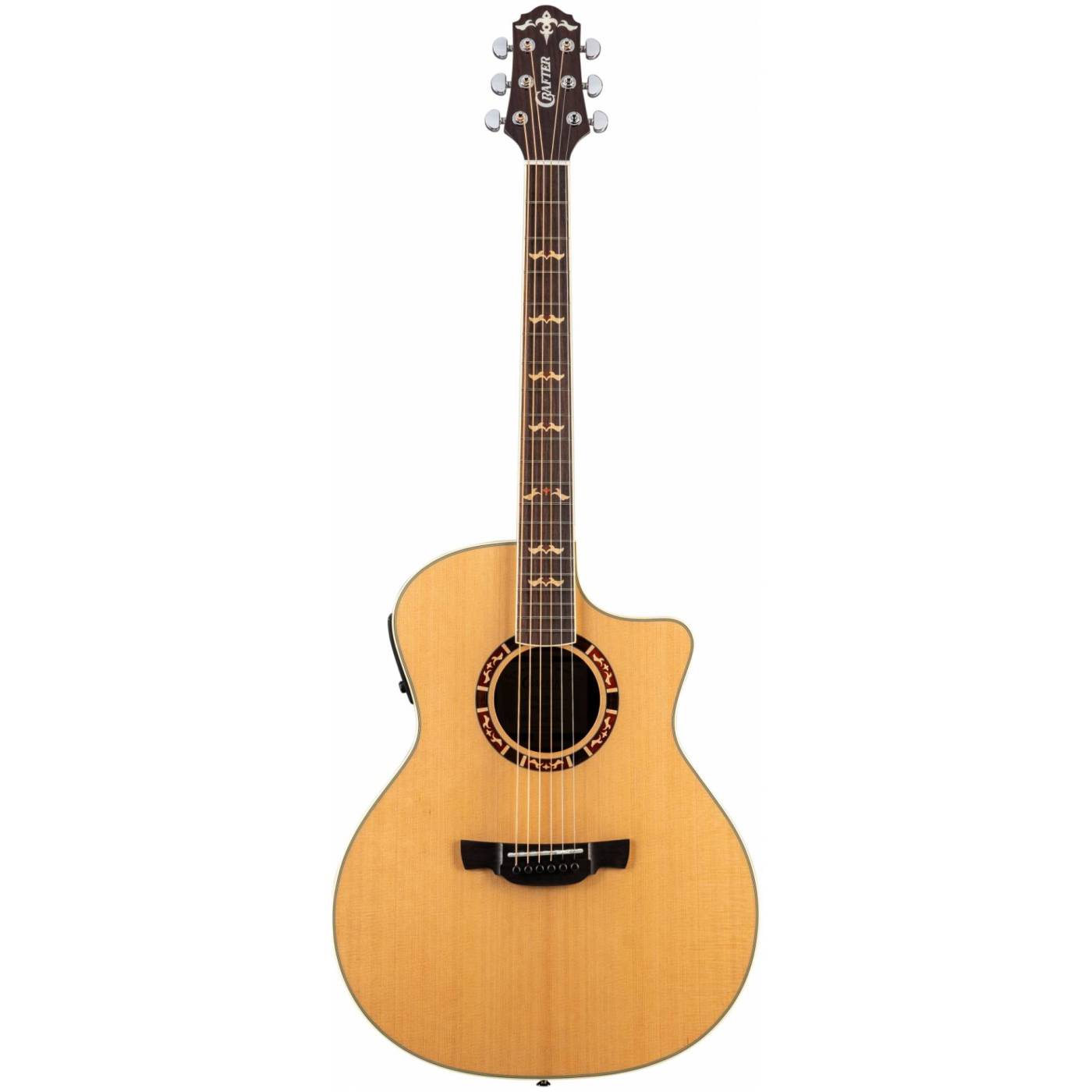 Верхняя дека гитары CRAFTER STG G-18ce выполнена из массива кедра, который отличается своим теплым звучанием и, благодаря корпусу из палисандра, приобретает более глубокий звук с мощными басами и высокими частотами.