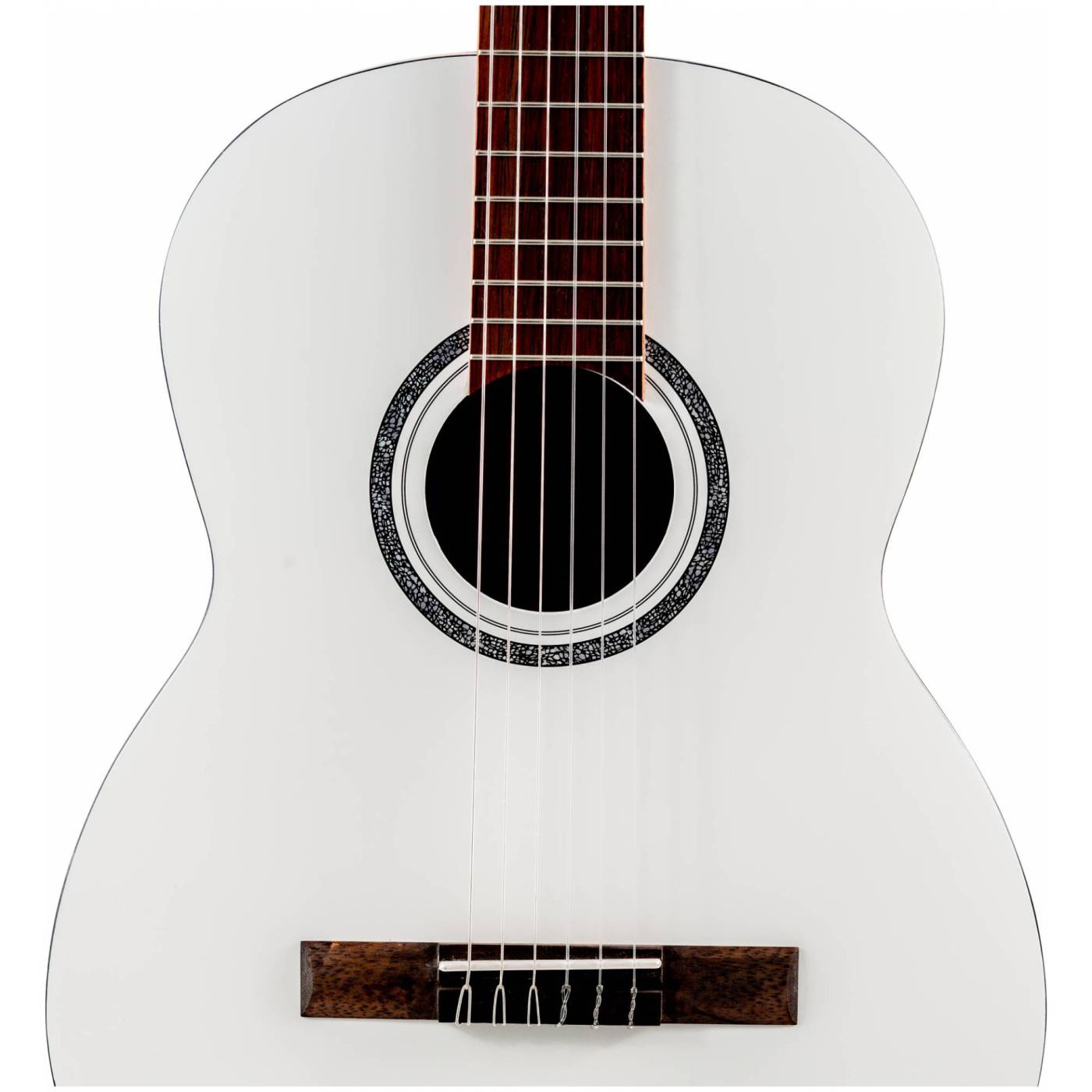 Полноразмерная 4/4 классическая гитара белого цвета с матовой отделкой.