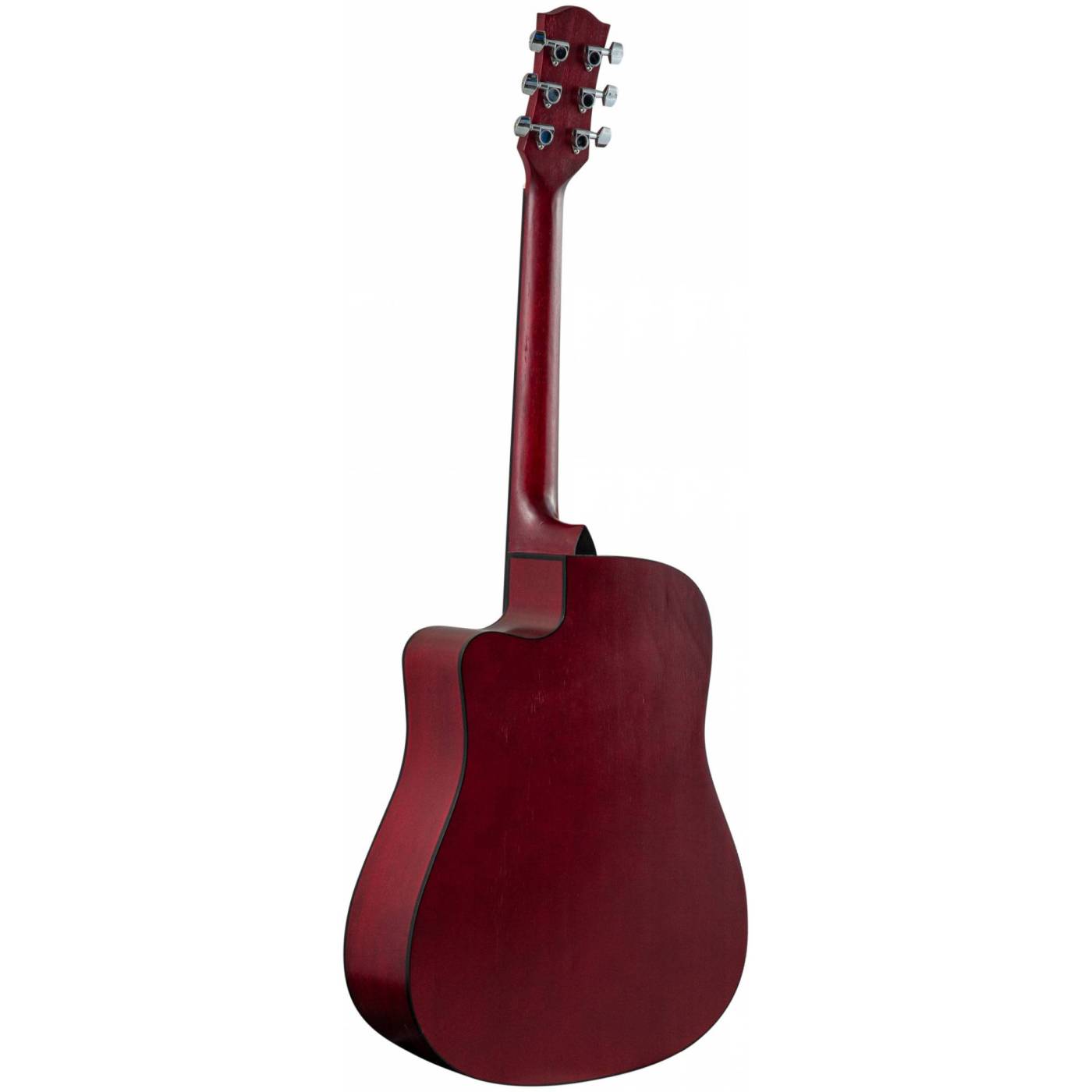 Гитара красный цвета, покрытие - матовый лак.
