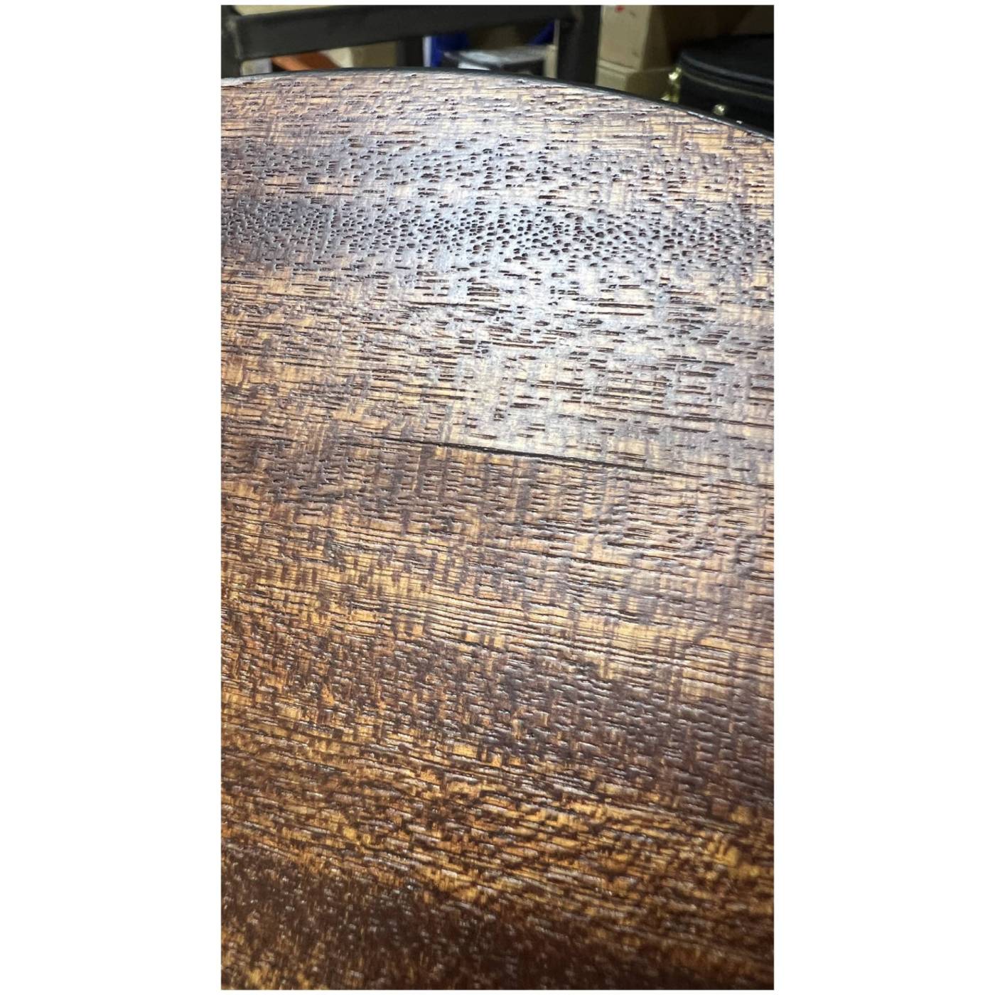 Нижняя дека и обечайки гитары изготовлены из сапеле, которое не только хорошо сочетается с елью внешне, но и дополняет её яркий прозрачный звук своей теплотой и певучестью. Натуральный цвет инструмента с прозрачным матовым лаком хорошо передает естественную красоту дерева, гармонично сочетаясь с любой окружающей обстановкой.
