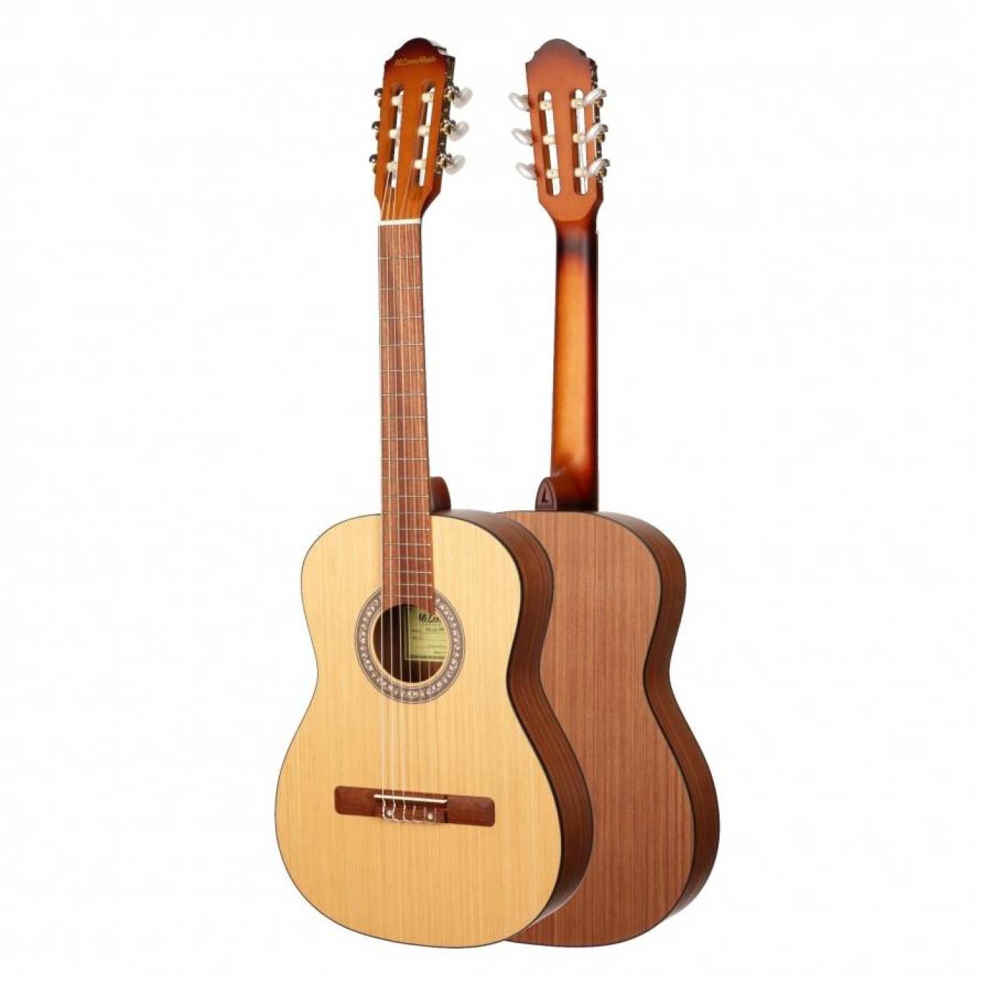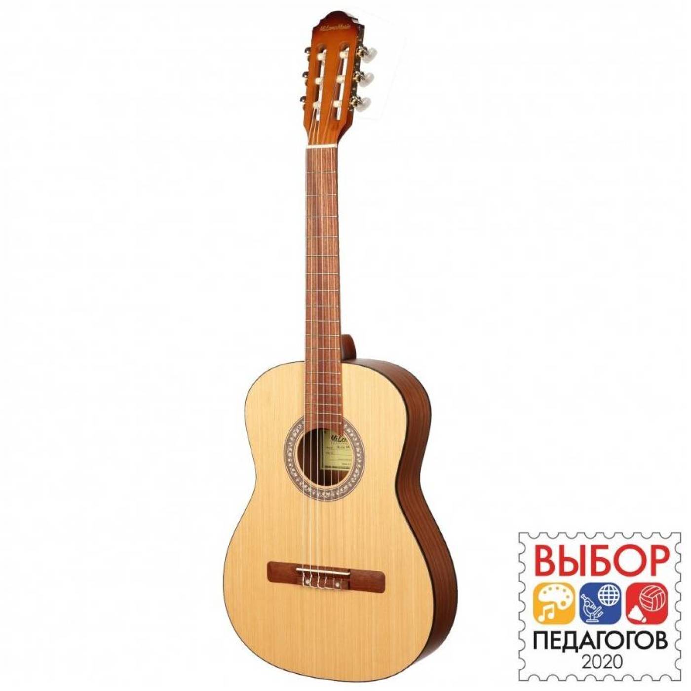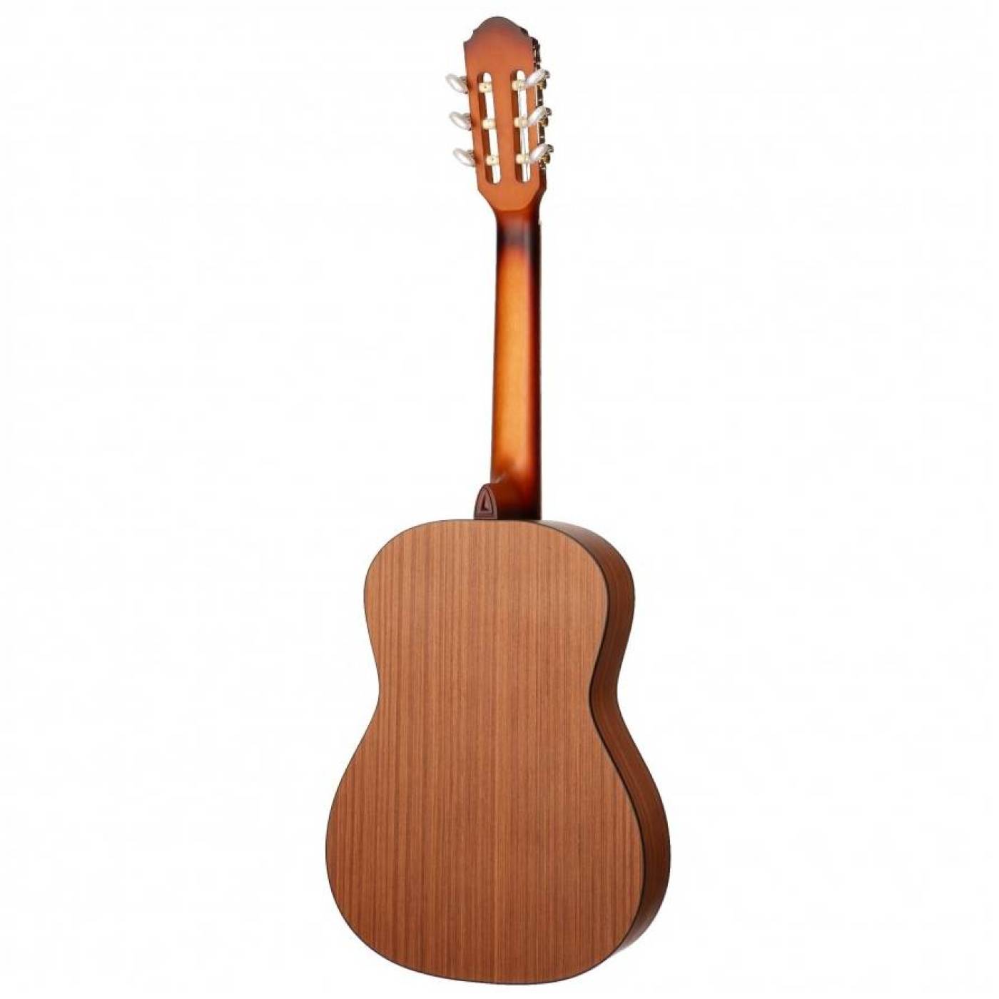 Передняя дека из хвойных пород древесины обладает ярким и сочным звуком, а задняя дека и обечайка из красного дерева дополняют общий солидный внешний вид. Уменьшенная классическая форма корпуса более лёгкая и компактная, что делает эту гитару хорошим выбором как для совсем юных музыкантов, так и для путешественников, которым важно удобство и малые габариты. Матовая отделка с открытыми порами обеспечивают этой гитаре отличный звук, так как дерево не скованно и оно отлично резонирует. Надёжное соединение грифа с корпусом "Ласточкин хвост" обеспечивает этому инструменту долгий срок службы. Струнодержатель, закреплённый, помимо клея, на двух винтах так же обеспечивают надёжность инструменту.