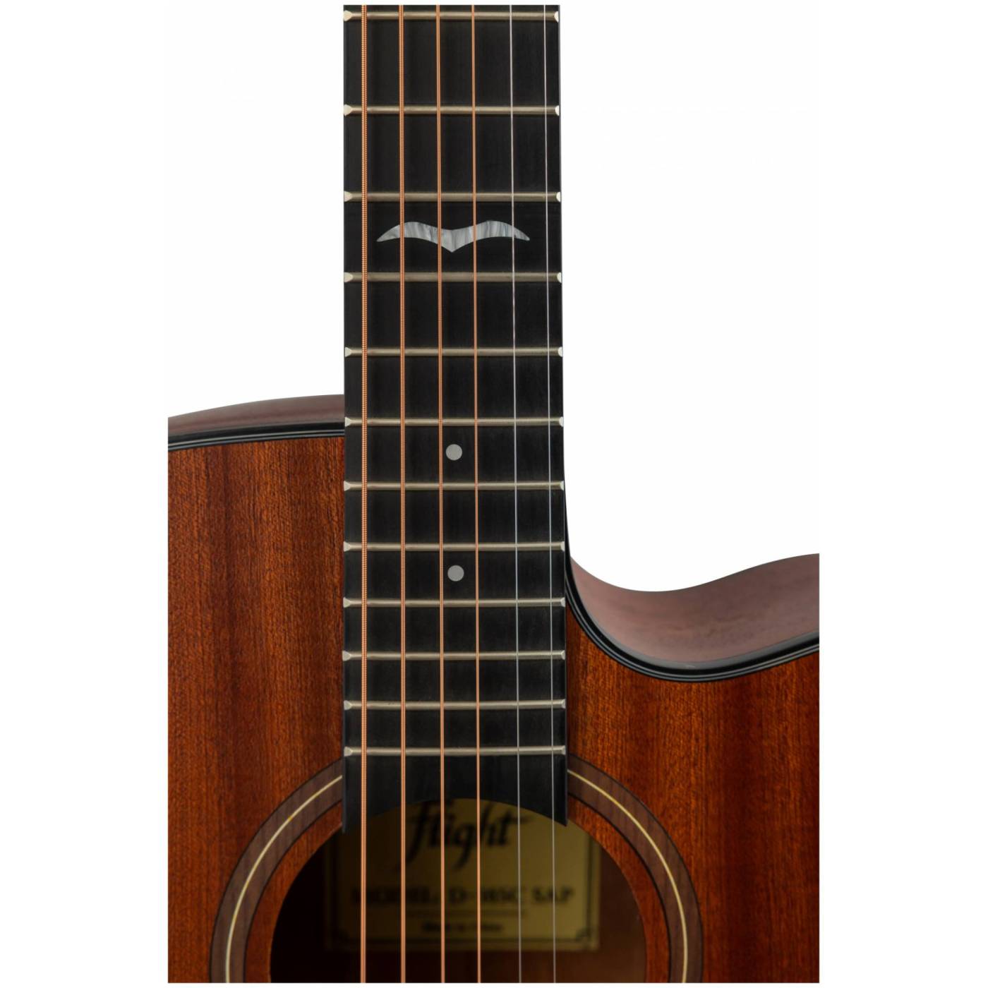 Верхняя и нижняя дека гитары FLIGHT D-165C SAP изготовлены из сапеле, которое наполняет звук своей теплотой и певучестью. Натуральный цвет инструмента с прозрачным матовым лаком хорошо передает естественную красоту дерева, гармонично сочетаясь с любой окружающей обстановкой.