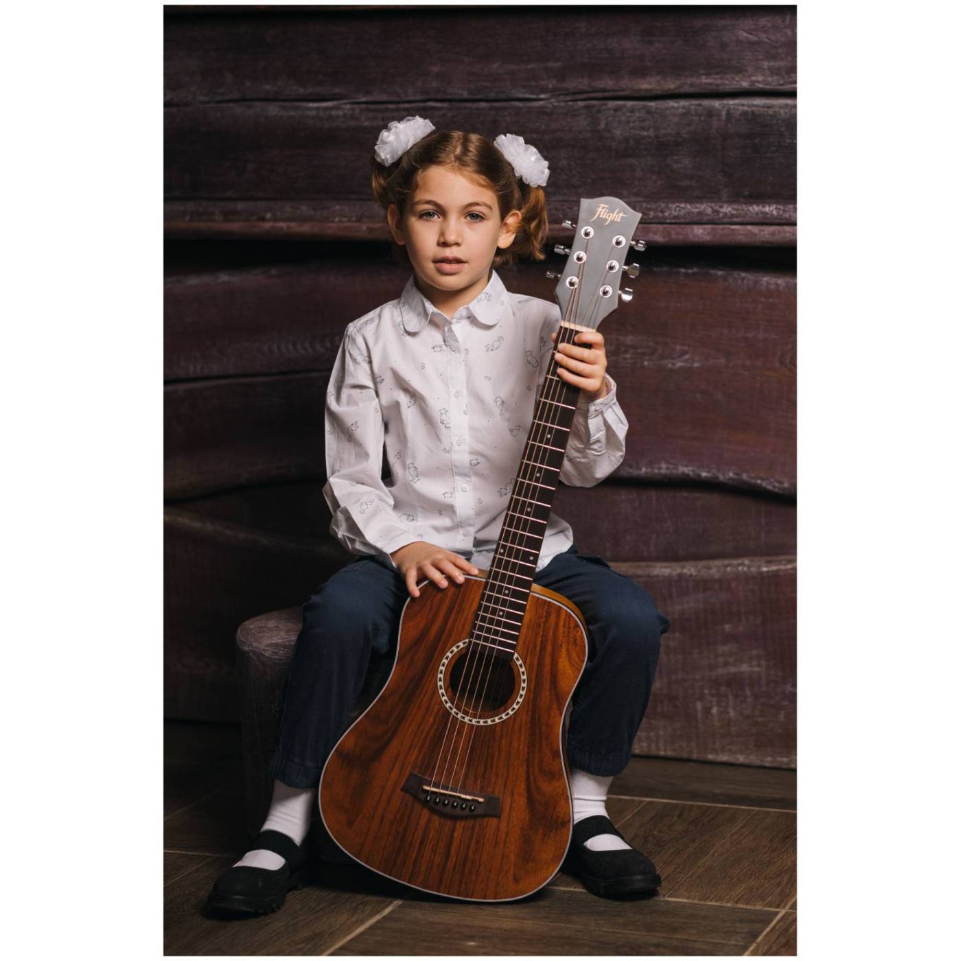 Корпус FLIGHT TR-1000 TEAK сделан из тика. Это очень красивая порода дерева, придающая звуку гитары мягкость, сбалансированность и чёткость.
