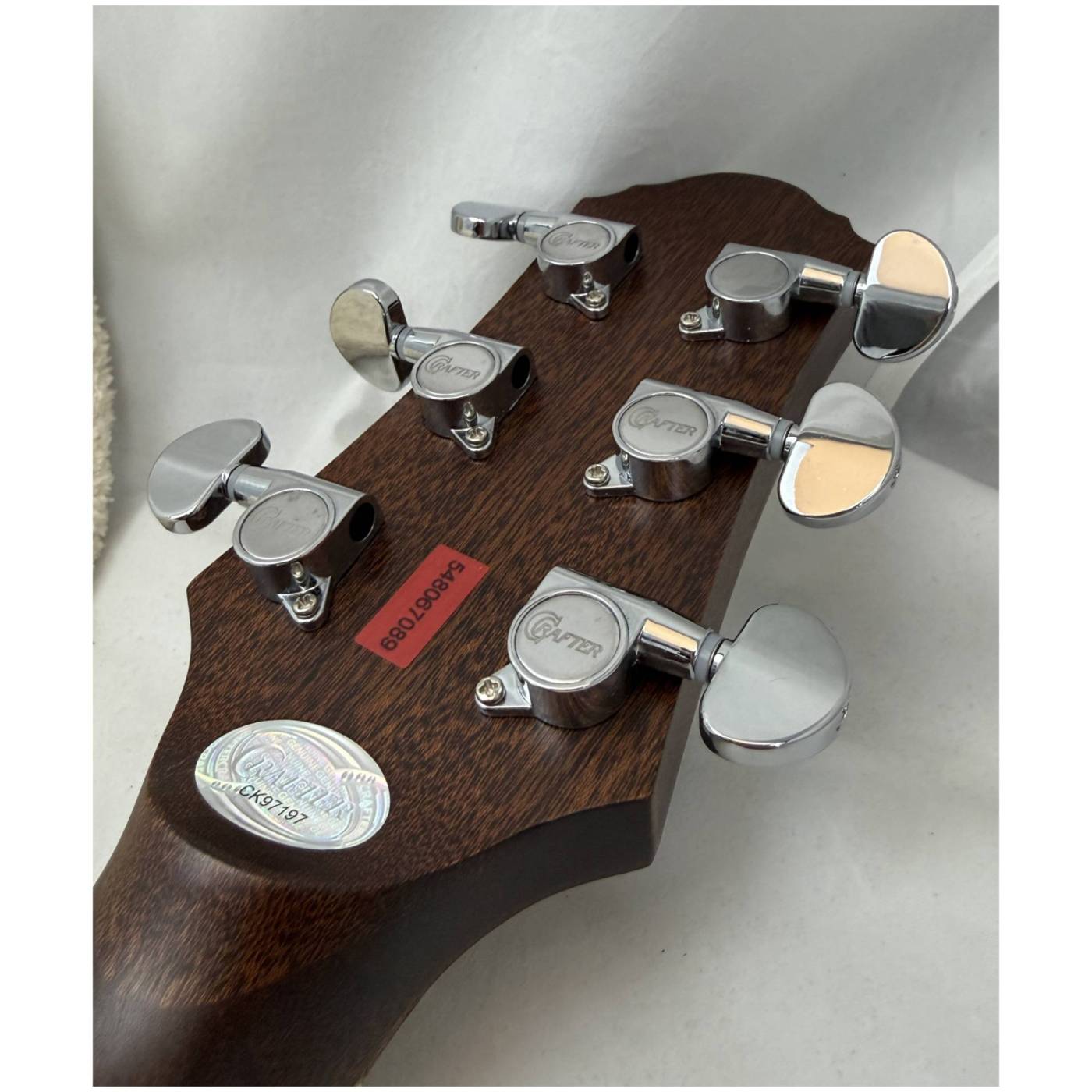 Верхняя дека CRAFTER DE 7/NC выполнена из массива красного кедра (Red Cedar), что дает гитаре глубокий и мощный звук с большой тональной гибкостью. Внешне красный кедр имеет благородную текстуру древесины и затемненный цвет, что хорошо подчеркнуто матовым лаком, которым покрыт корпус.