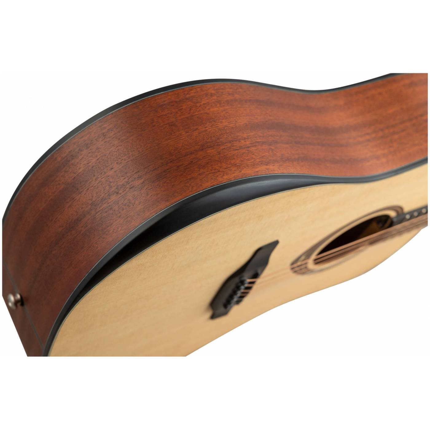 Верхняя дека выполнена из массива ситхинской ели - эта порода древесины особенно ценится в производстве музыкальных инструментов за её однородную структуру, которая обеспечивает хороший резонанс и глубокий, прозрачный звук. Корпус сделан из сапеле. Тонкий матовый лак позволяет дереву лучше «дышать» и раскрывает все нюансы и естественную красоту звучания инструмента.