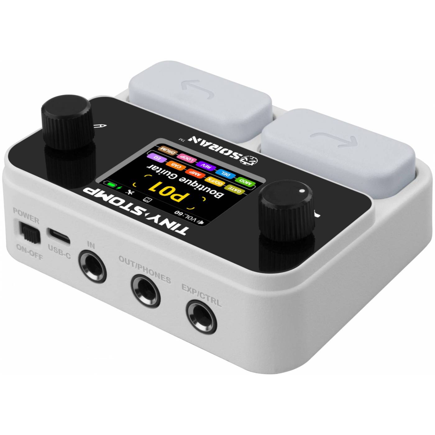 Ультракомпактный дизайн с мощным процессором эффектов . Tiny Stomp предлагает 125 типов эффектов и поддерживает до 10 одновременно работающих модулей, включая GATE, OD/FX, AMP, CAB, EQ, MODULATION, DELAY, REVERB, LOOPER и DRUM. Он обеспечивает полную цепочку эффектов как для гитары, так и для баса в очень компактном устройстве.